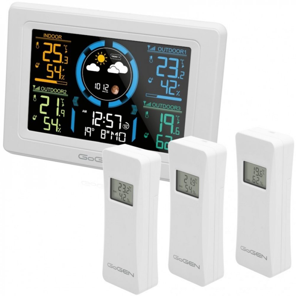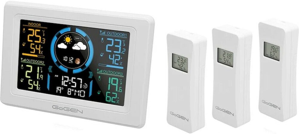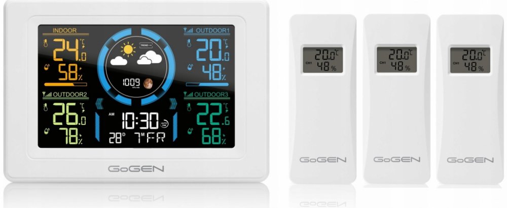 Meteorologická stanice GoGEN ME3397 je ideální pro všechny, kteří chtějí měřit teplotu a vlhkost na třech různých místech současně. Například ve skleníku, sklepě a garáži. Na přehledném barevném LCD displeji jsou v jednom čase zobrazovány hodnoty ze všech tří čidel. Máte tak okamžitý přehled o aktuálních hodnotách. Dosah bezdrátového senzoru v otevřeném prostoru je až 70 metrů. Pro venkovní naměřené hodnoty meteostanice ukládá i jejich maxima a minima.