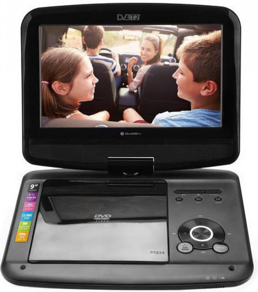 Přenosný DVD přehrávač, 9“ LCD displej, DVB-T/T2(h.265), USB vstup, SD/SDHC slot, HDMI výstup,Record Ready, příslušenství