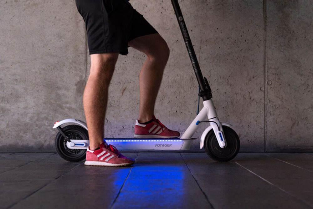 Neméně důležitá je také bezpečnosti při jízdě na elektrokoloběžce. O pohodlné, a hlavně bezpečné zastavení nebo zpomalení se stará zadní kotoučová a přední elektronická brzda. Vidět a být viděn. Základní pravidlo bezpečnosti silničního provozu ctí i elektrokoloběžka GoGEN VOYAGER. A to hned trojicí LED světel. Samozřejmostí je přední a zadní světlo. Ty jsou doplněna o řadu LED diod na bočních stranách koloběžky, které vytváří efektivní a zároveň dobře viditelné podsvícení.