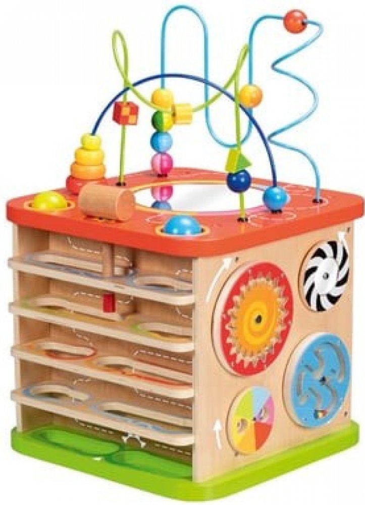 Podrobnosti o produktu:Tato XXL kostka nabízí nekonečné možnosti hravého objevování.Každá strana kostky je vybavena vzrušujícími aktivitami, které stimulují dětskou zvědavost a jemnou motoriku.Od třídičů tvarů a motorických smyček až po dešťovky a barevná ozubená kolečka - kostka aktivit nabízí různé výzvy, které trénují kognitivní dovednosti.Kostka aktivit je vyrobena z vysoce kvalitního, robustního materiálu a zajišťuje dlouhotrvající zábavu při hřeRozměry a hmotnost:Rozměry (délka x šířka x výška): 35 x 35 x 54 cmHmotnost výrobku: 9 kgMateriál a péče:Materiál: dřevo, Metal l