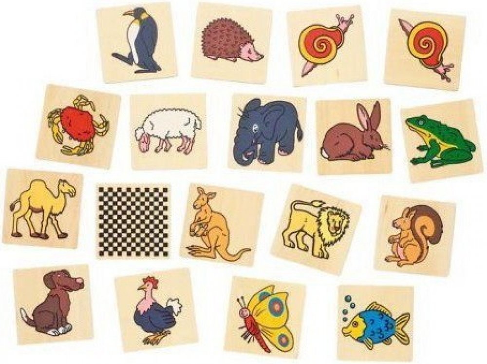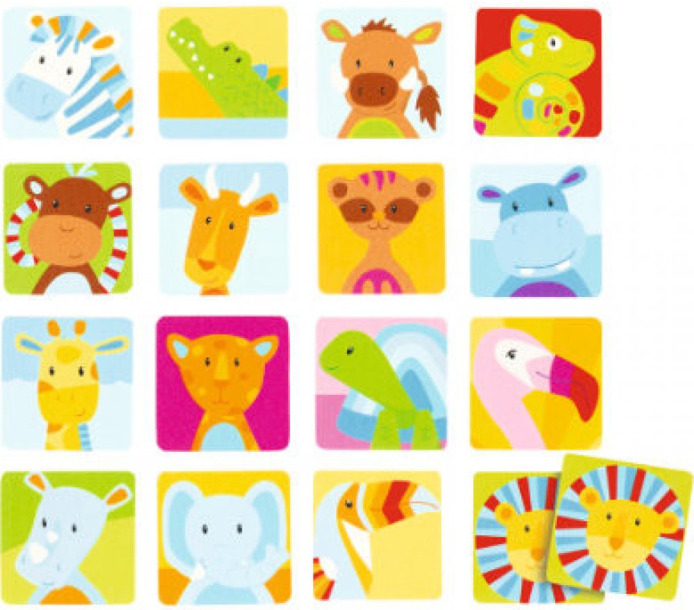 Pexeso má 32 obrázků (16 párů) zvířátek z divočiny..