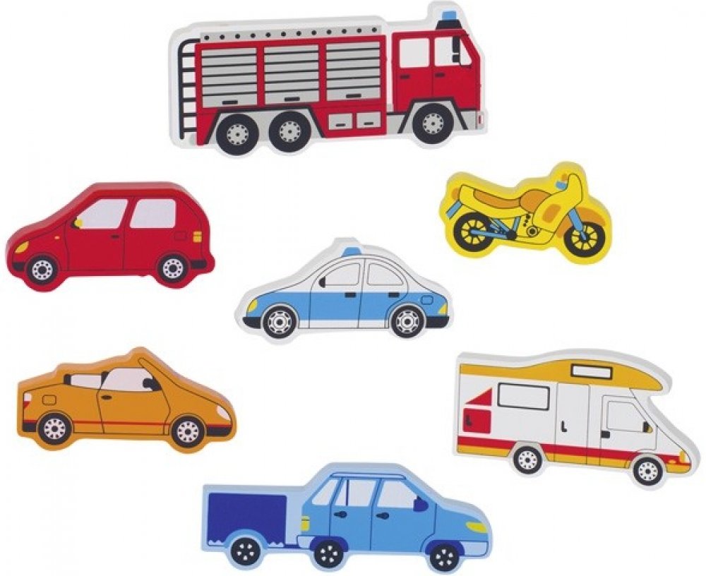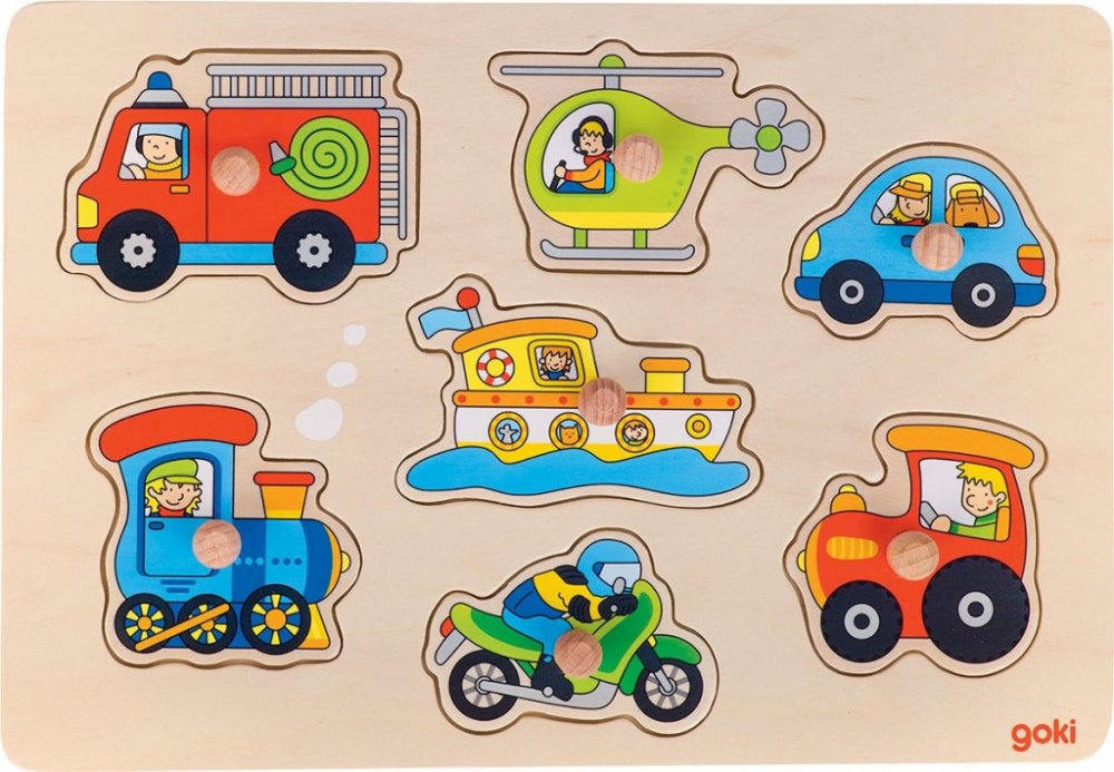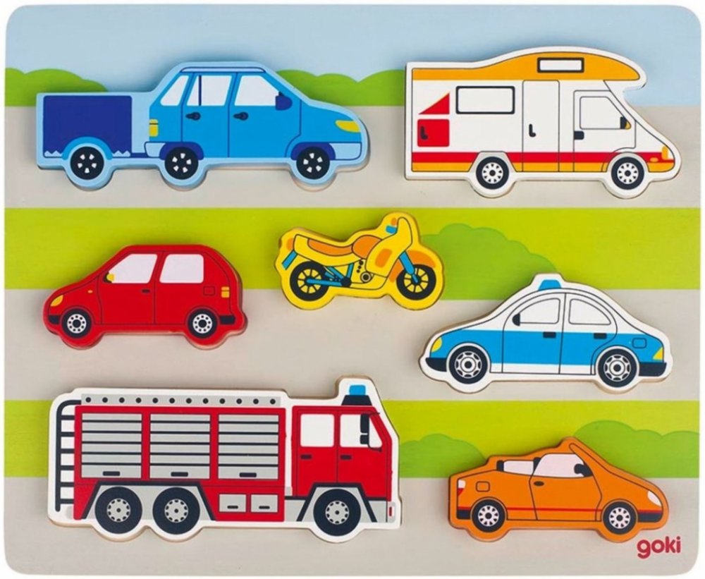 Goki dřevěné puzzle i kostky pro nejmenší Autíčka