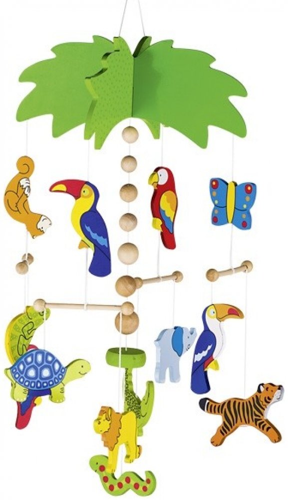 Goki Dřevěný závěsný kolotoč - exotická zvířátka