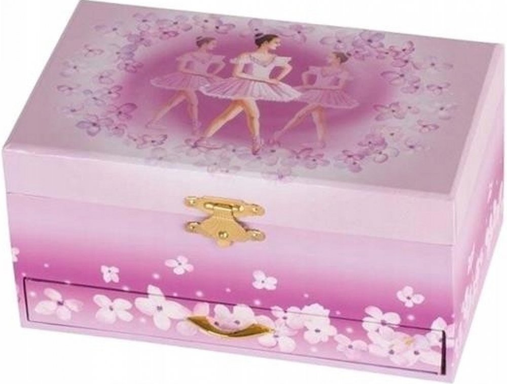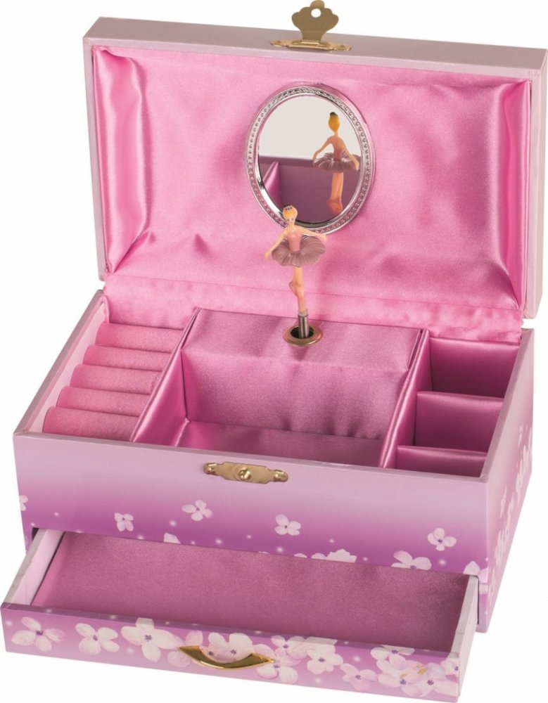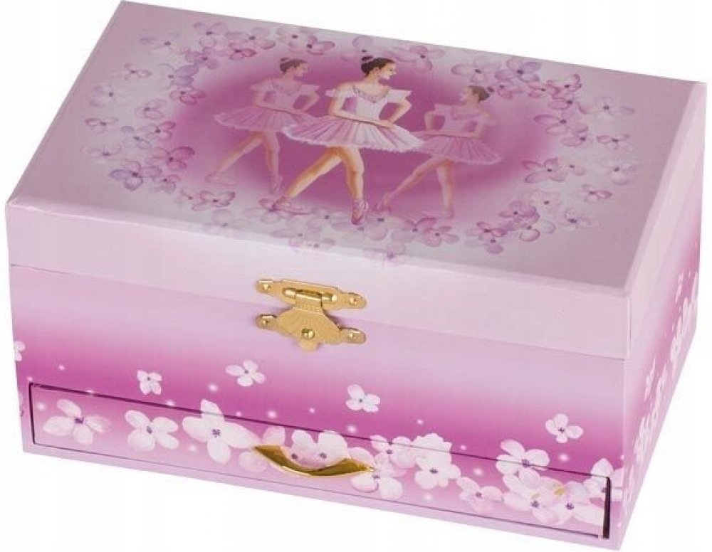 Každá dívka si ráda schová své šperky a ozdoby do vlasů do krásné hrací šperkovnice Baletka VI, která hraje melodii Labutí jezero. Hrací skříňka má velký úložný prostor, při otevření hraje a otáčí se baletka. Šperkovnice má vytahovací šuplíky. Design má jemnou fialovou barvu, vnitřek je vyplněn růžovým saténem.