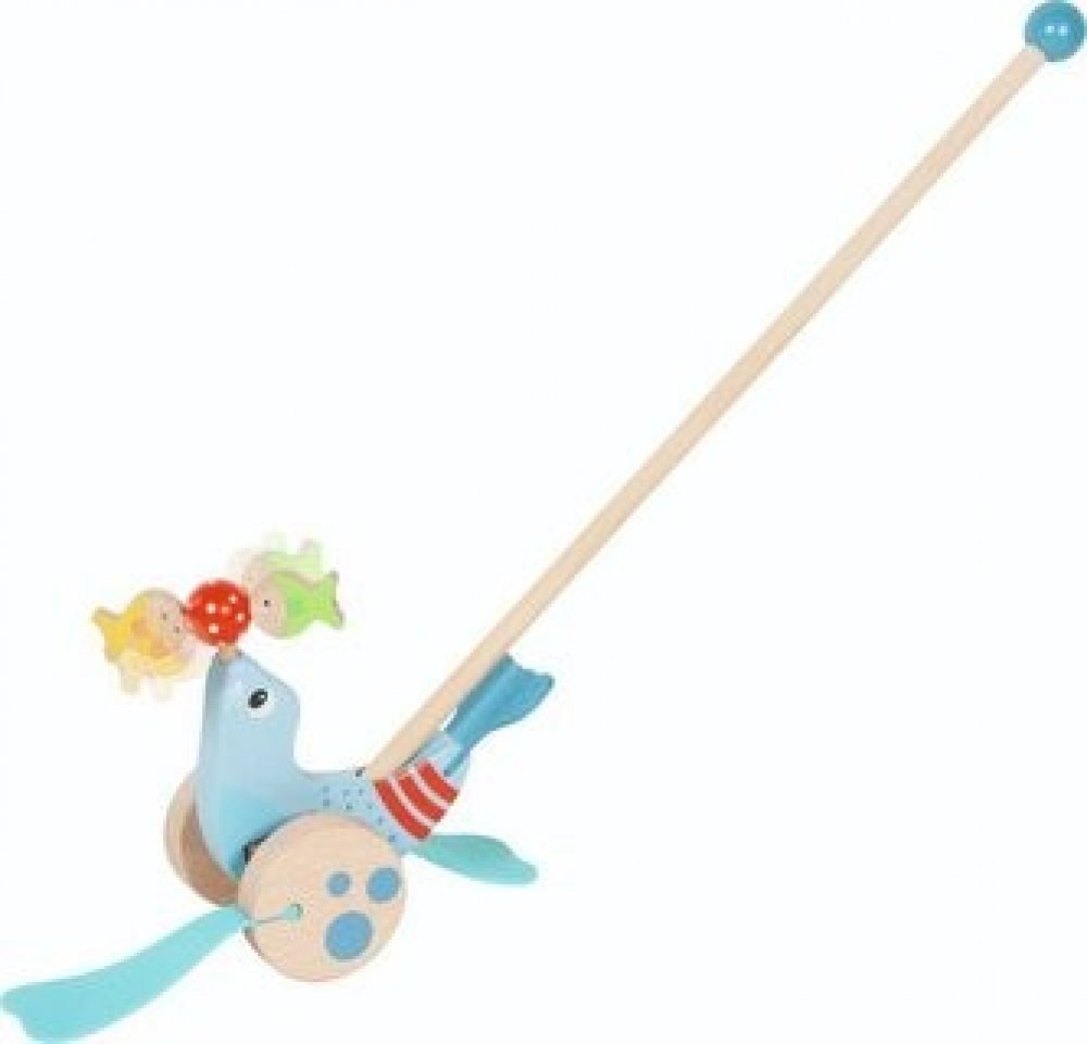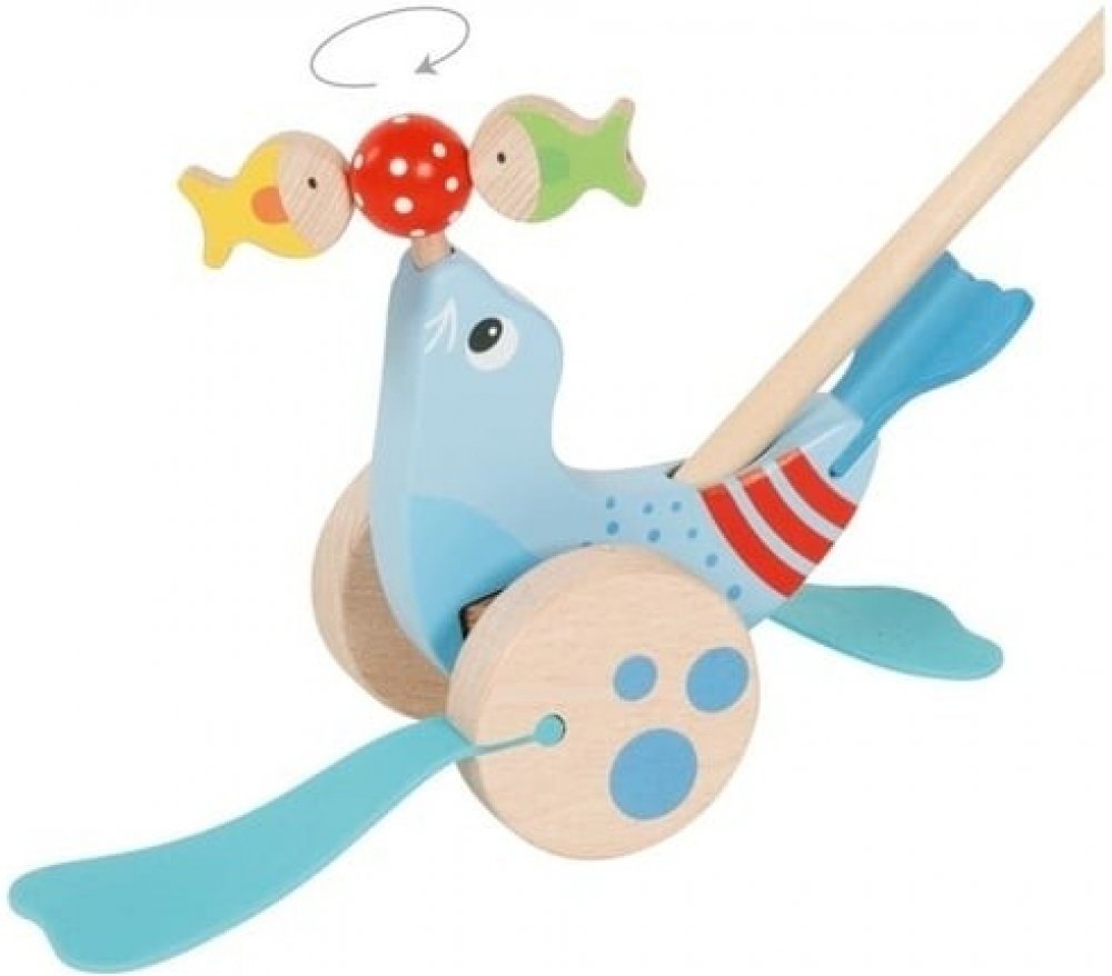 Učení chůze je s dřevěným zvířátkem na tlačení dvakrát zábavnější. Roztomilý tuleň nevyvažuje jen míček, ale také dvě ryby. Ty se začnou otáčet hned, jak začnete tlačit. Tato klasická dřevěná hračka doprovází vaše dítě při objevování světa a podporuje pohyb. Goki představuje zodpovědné, vysoce kvalitní dřevěné hračky. S láskou navrženým designem nabízí hrací hodnotu vhodnou pro děti již od jednoho...