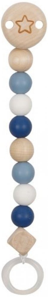 Goki klip na dudlík dřevo a silikon modrá