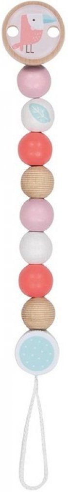 Dřevěná šňůra s klipem na dudlík je té nejvyšší kvality. Zároveň slouží jako hračka s kterou si dítě může hrát. Řetízek se upevňuje na oděv pomocí pevného klipu.