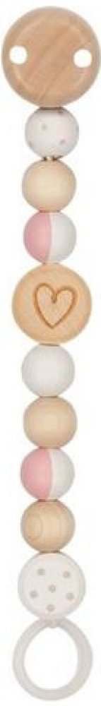 Dřevěná šňůra s klipem na dudlík je té nejvyšší kvality. Zároveň slouží jako hračka s kterou si dítě může hrát. Řetízek se upevňuje na oděv pomocí pevného klipu.
