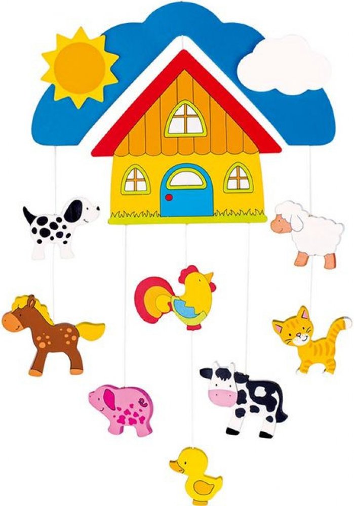 Pod sytě modrým nebem se sluníčkem a bílým obláčkem stojí malá farma se spoustou zvířátek – ovečka, prasátko, kohoutek, kačenka. Závěsný kolotoč má výrazné barvy a pro děti zajímavá zvířátka. Děti mohou závěsný kolotoč pozorovat, učit se zvířátka pojmenovat a v příjemném a ladném pohybu závěsného mobile najdou i klid, pohlazení po duši, uvolnění a někdy i spánek. Výrobek dodáváme v krabičce z kartonu. Závěsný kolotoč je vyroben z překližky. Výrobek je dekorace. Výrobek není hračka.