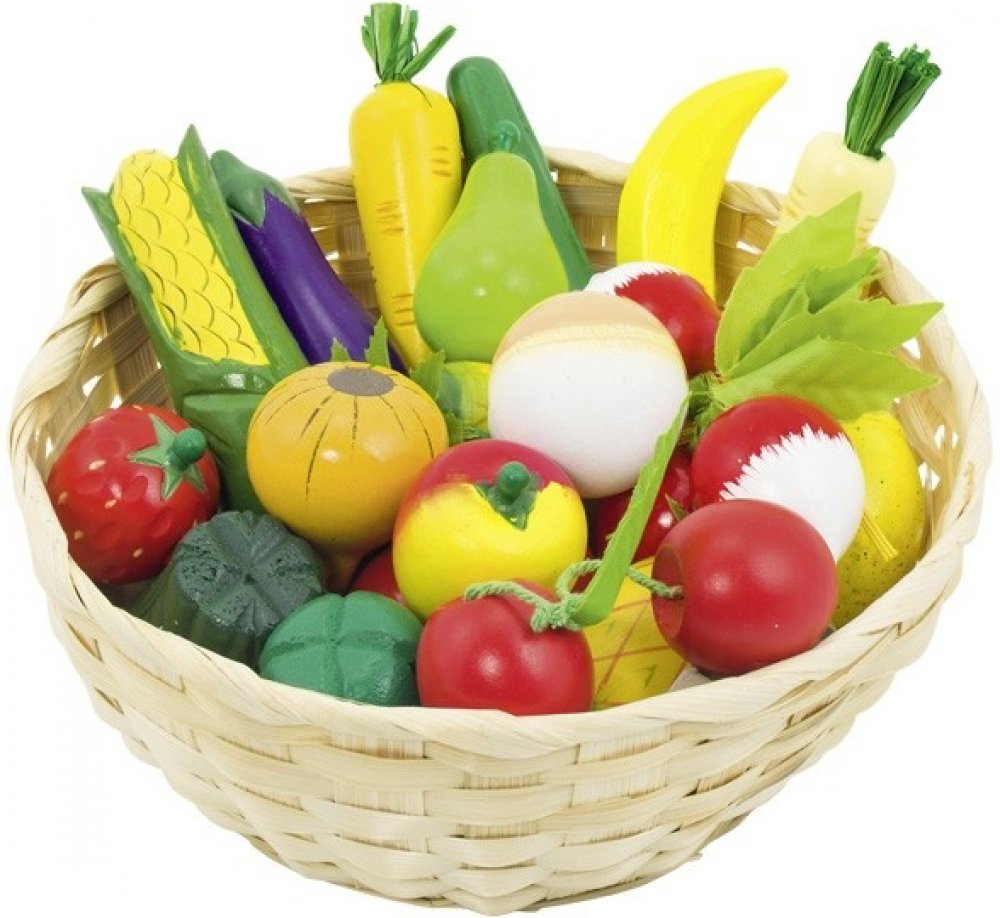 Goki Proutěný košík plný dřevěného ovoce a zeleniny, 23ks