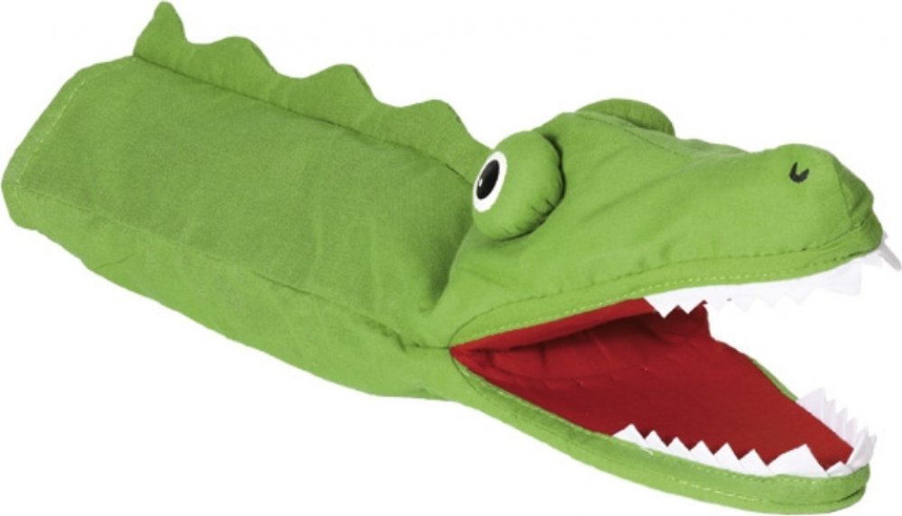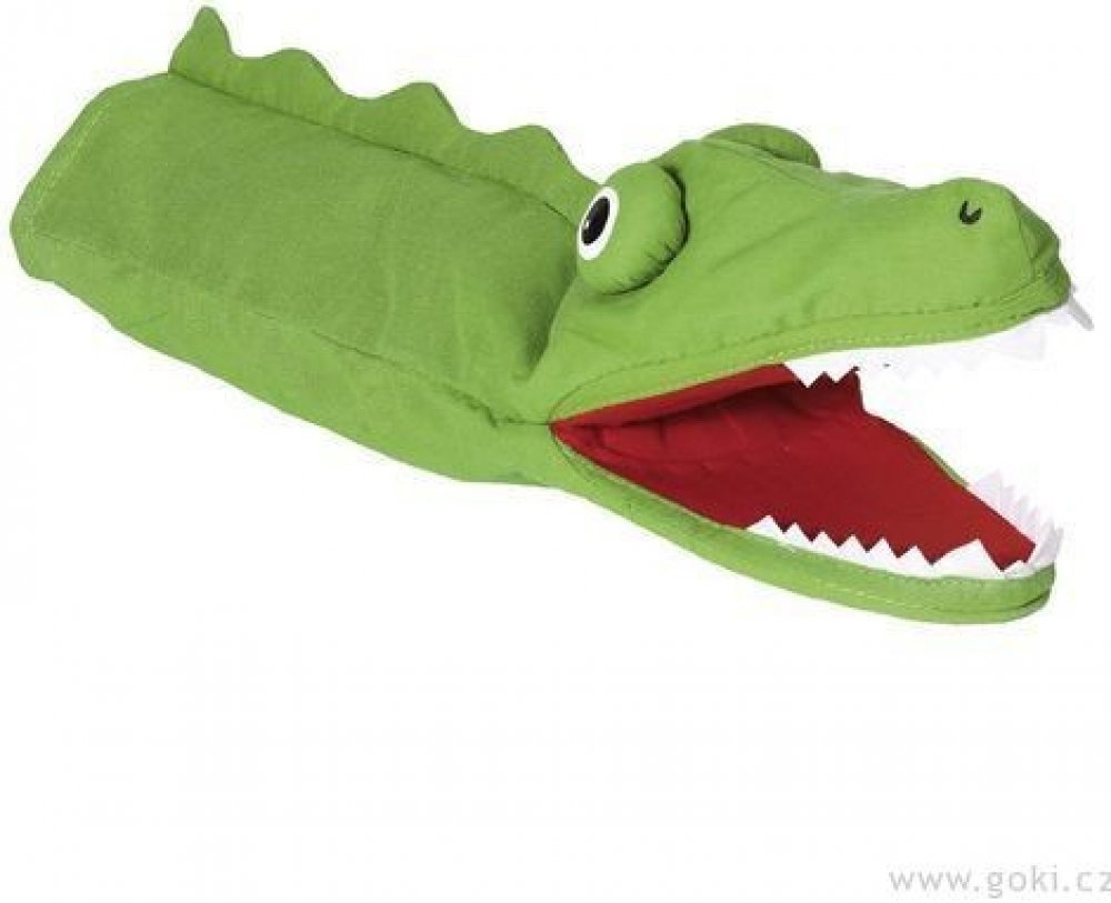 Textilní maňásek na ruku zelený drak má pořádný chřtán a velké zuby. Jestli z něho bude zlý drak nebo hodný dráček, to záleží na Vás. Maňásek na ruku má délku 30 cm.