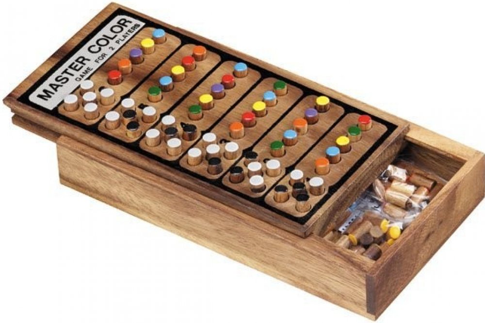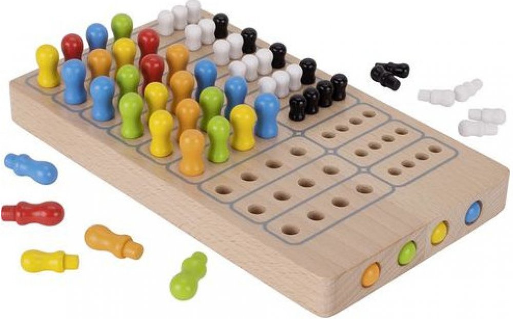 Oblíbená logická hra Master Logic v dřevěném provedení skvěle trénuje šedé mozkové buňky při řešení barevných kombinací.