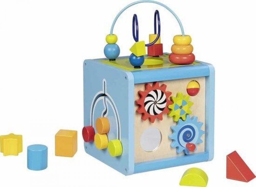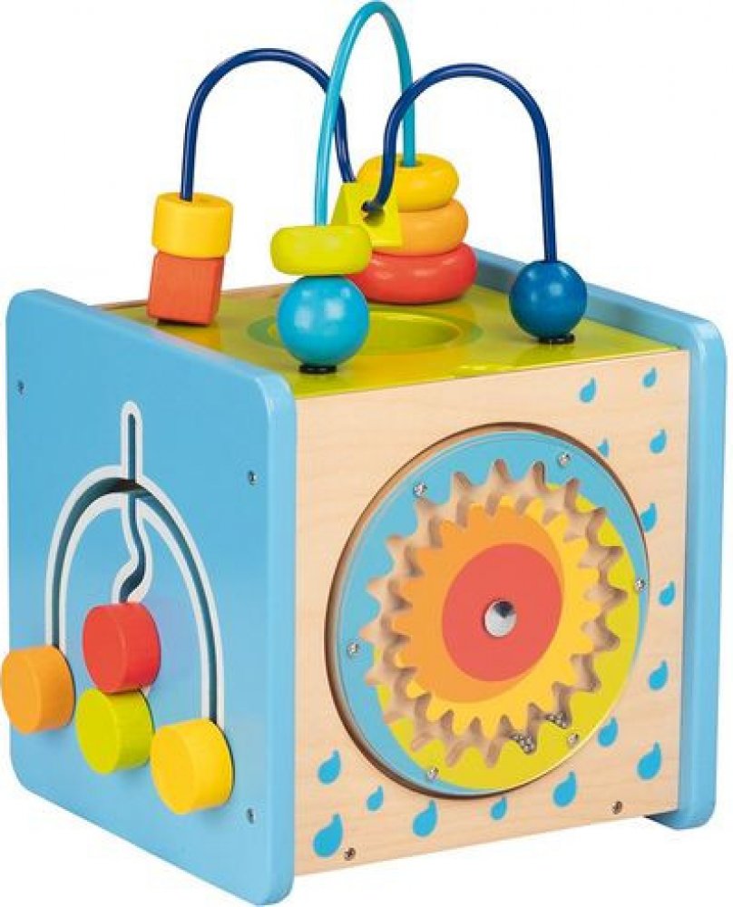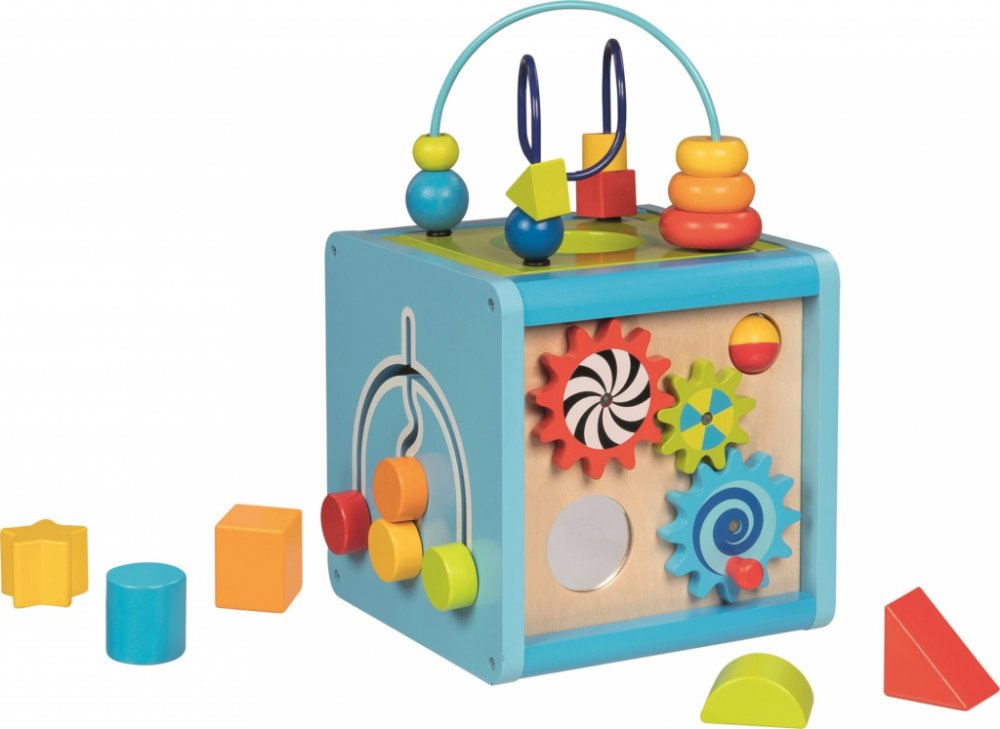 Motorická kostka 5v1 je vyrobena z pevného dřeva s pohyblivými prvky. Každá stěna má jinou funkčnost. Kostka obsahuje řadu pohyblivých prvků a knoflíků, které rozvíjejí manuální a kreativní schopnosti dítěte. Součástí je posuvný labyrint, na kterém můžete posunovat barevné korálky. Vzdělávací kostka účinně rozvíjí: hmat, zrak, koordinaci, pohyblivost rukou a prstů.