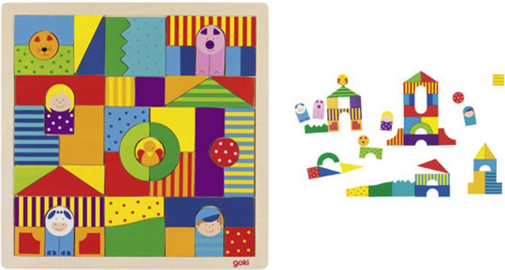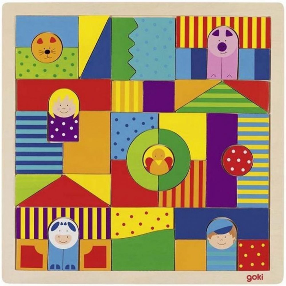 Dřevěný hlavolam a kostky v jednom Farma GOKI. Materiál dřevo s povrchovou úpravou.