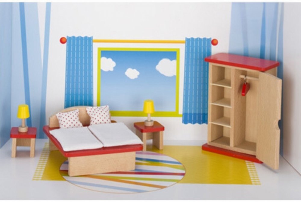 Nábytek do ložnice pro panenky patří do série goki basic, je klasicky moderní a v kombinaci s červenou barvou veselý. Velikost nábytku je vhodná do klasického domečku pro panenky. Domeček můžete zařídit v jednom stylu, ale můžete různé série kombinovat, protože si nábytek velikostně odpovídá. V nabídce najdete navíc malé doplňky do kuchyně, dětského pokoje, domácnosti, které celé vybavení domečků oživí. Nábytek je vyrobený z masivního dřeva, je solidní a stabilní. Výška skříně u nábytku ložnice je 14,7 cm.