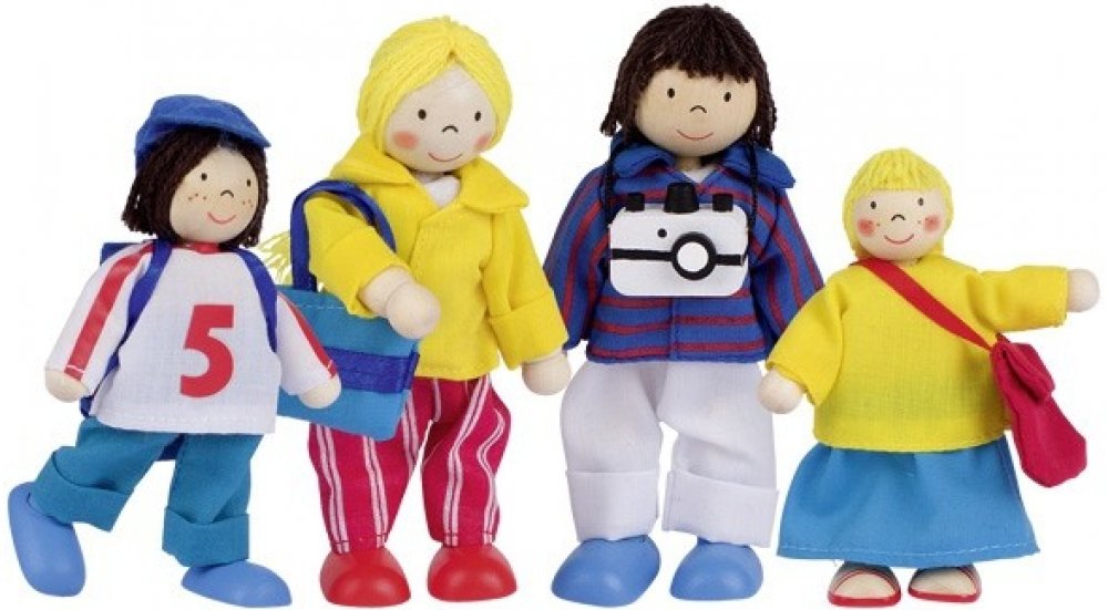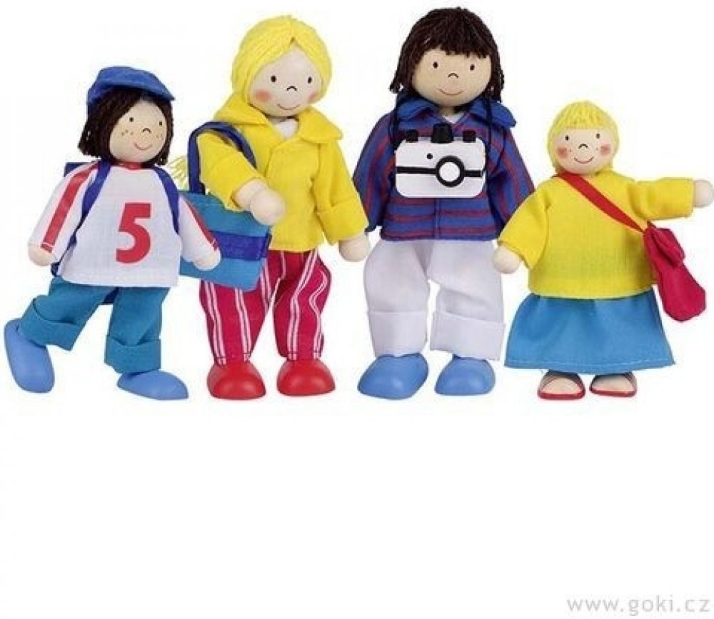 Sada obsahuje 4 ohebné panenky do domečku - maminka s plážovou taškou, tatínek s fotoaparátem, syn s baťůžkem a dcerka v blonďatými cůpky. Panenky jsou vyrobeny ze dřeva a drátu, oblečky jsou z různých druhů textilií. Výška panenek je 9 - 10,5 cm. Vhodné pro děti od 3 let.Panenky a domečky pro panenky jsou oblíbené hračky, edukativní, podporují fantazii a inspirují. Dřevěný domeček Goki je klasick...