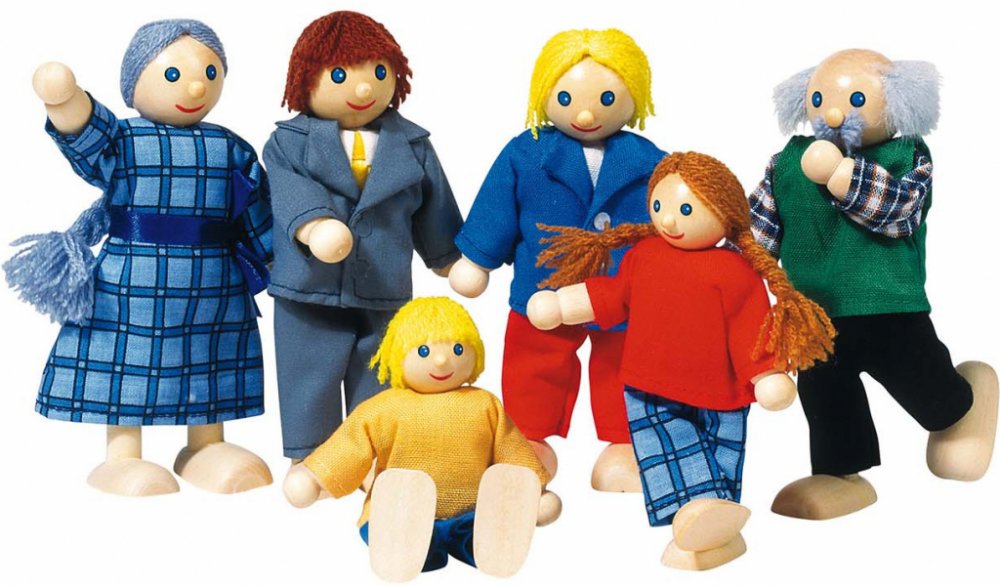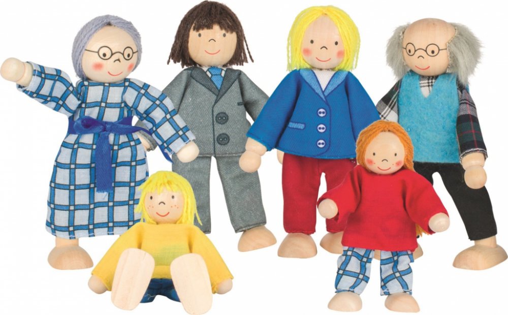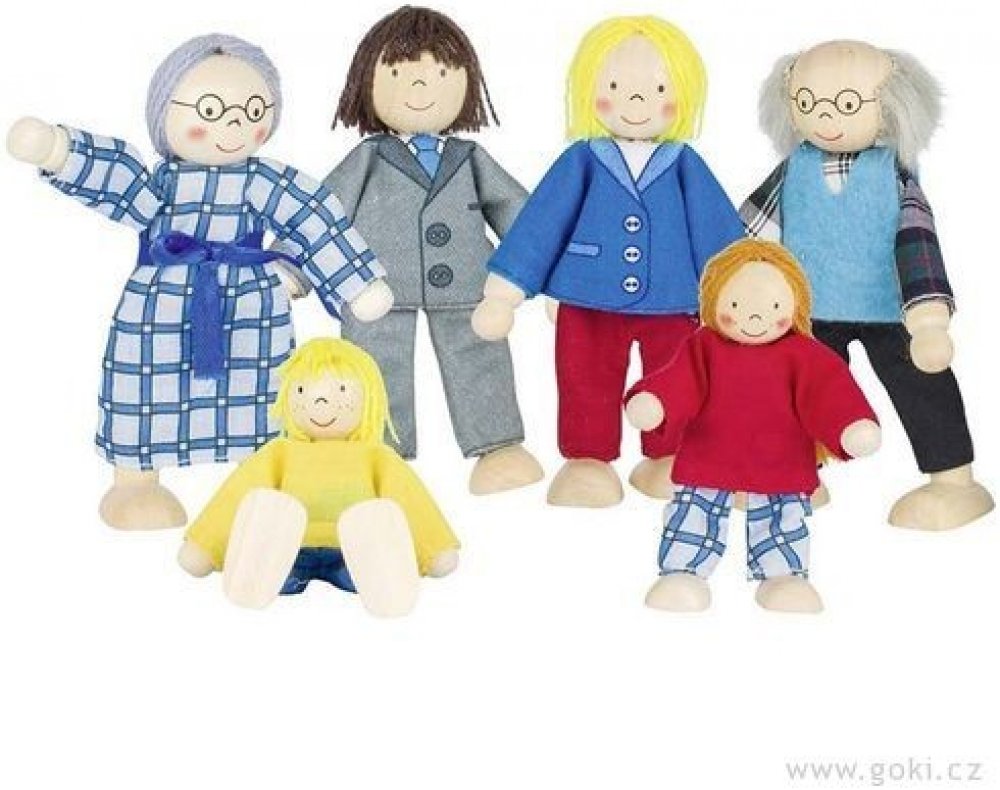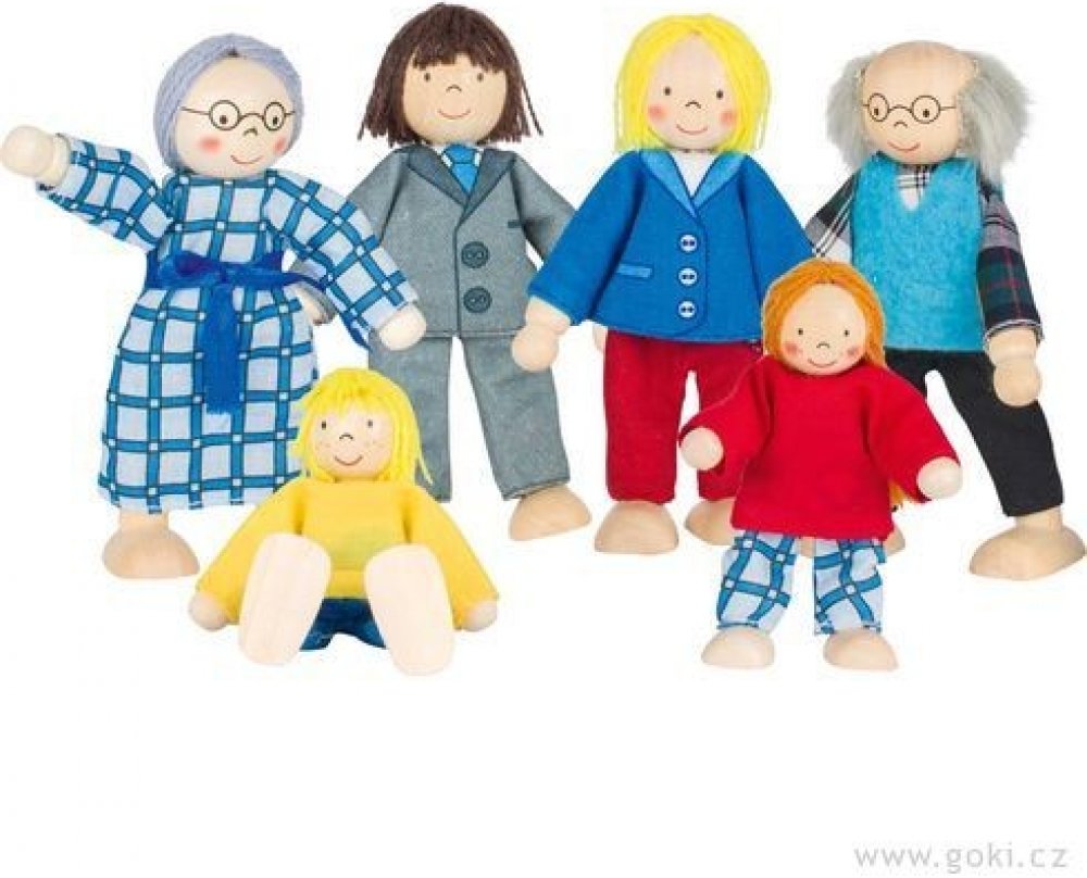 Dřevěné panenky jsou pohyblivé, mohou sedět, stát nebo ležet. Hodí se do domečků nebo pro samostatné hraní. Vhodné do všech domečků pro panenky značky Goki. materiál: dřevo, drát, různé druhy textilií. Výška panenek: 9 - 11 cm. Balení obsahuje 6 ks postaviček: babičku, dědečka, maminku, tatínka, dceru a syna. GOKI patří mezi nejvýznamnější evropské výrobce hraček s vysokou pedagogickou a didaktickou kvalitou. Firma klade důraz na bezpečnost hraček, jejich zdravotní nezávadnost a dbá na obnovitelné zdroje. Dřevo je bráno tam, kde může dorůstat. Používané dřeviny jsou javor, buk, ořech, lípa, jasan, borovice, bříza a gumovník. Barvy a laky pocházejí od menších výrobců.