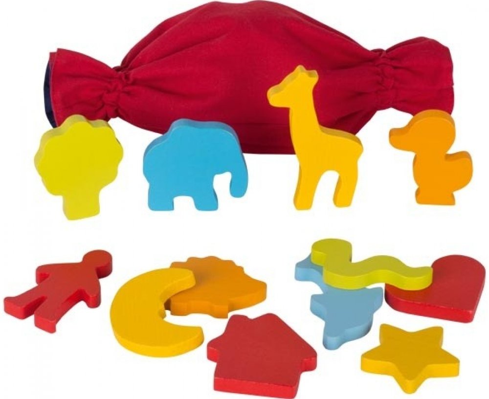 Balení obsahuje: bavlněný pytlík, 32 ks hracích dílků, návod. Hra je vhodná pro zrakově postižené. GOKI patří mezi nejvýznamnější evropské výrobce hraček s vysokou pedagogickou a didaktickou kvalitou. Firma klade důraz na bezpečnost hraček, jejich zdravotní nezávadnost a dbá na obnovitelné zdroje. Dřevo je bráno tam, kde může dorůstat. Používané dřeviny jsou javor, buk, ořech, lípa, jasan, borovice, bříza a gumovník. Barvy a laky pocházejí od menších výrobců.