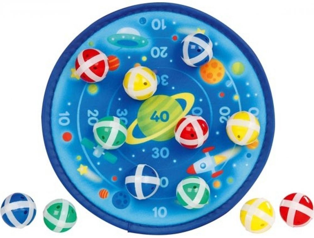 Oblíbená hra pro děti i dospělé. Terč vesmír je hra, která funguje na bázi suchého zipu, tzn. míčky mají drápky a terč chloupky. Úkolem je nasbírat co nejvíce bodů při házení na terč.