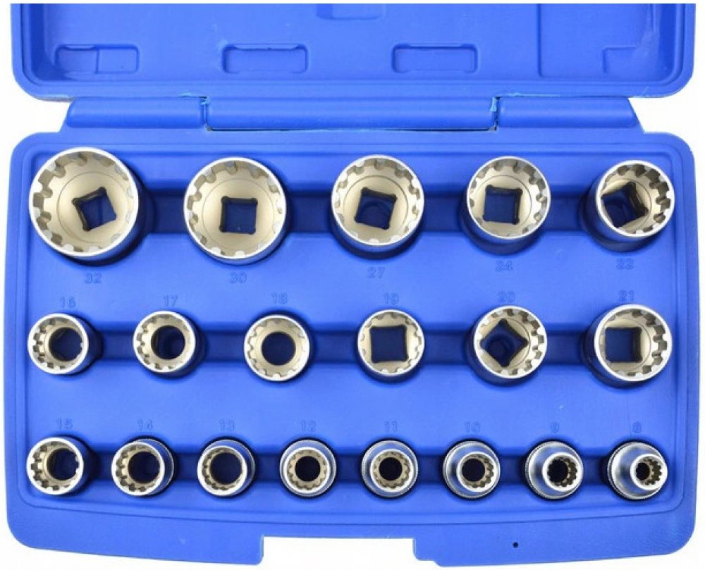 12bodové zásuvky: 8, 9, 10, 11, 12, 13, 14, 15, 16, 17, 18, 19, 20, 21, 22, 24, 27, 30, 32 mm