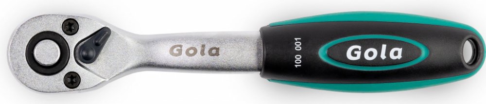 Stejně jako u kleští má i rukojeť ráčny ergonomický tvar a je vyrobena ze dvou materiálů dobře padnoucích do ruky. Kulička čtyřhranu ráčny má aretaci, která zajišťuje pevné držení hlavic na čtyřhranu a po zmáčknutí zajišťovacího tlačítka jejich snadné sejmutí.