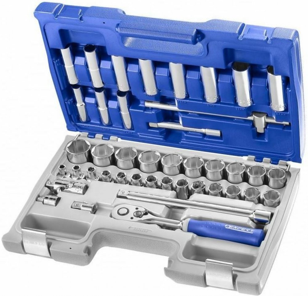Gola sada s nářadím v metrických rozměrech, vodicí 4hran 1/2“, 42 dílů v plastovém kufříku s kovovými přezkami a panty – Tona Expert E032908Kompaktnější, ale velmi praktická a kvalitní „golovka“ s 6hrannými hlavicemi (tzv. ořechy) ve standardních i prodloužených variantách. Vhodná i pro náročnější nasazení v autoservisu či dílně, ale i v domácnosti. Sada obsahuje:- 1x ráčna s přepínáním vlevo/vpra...