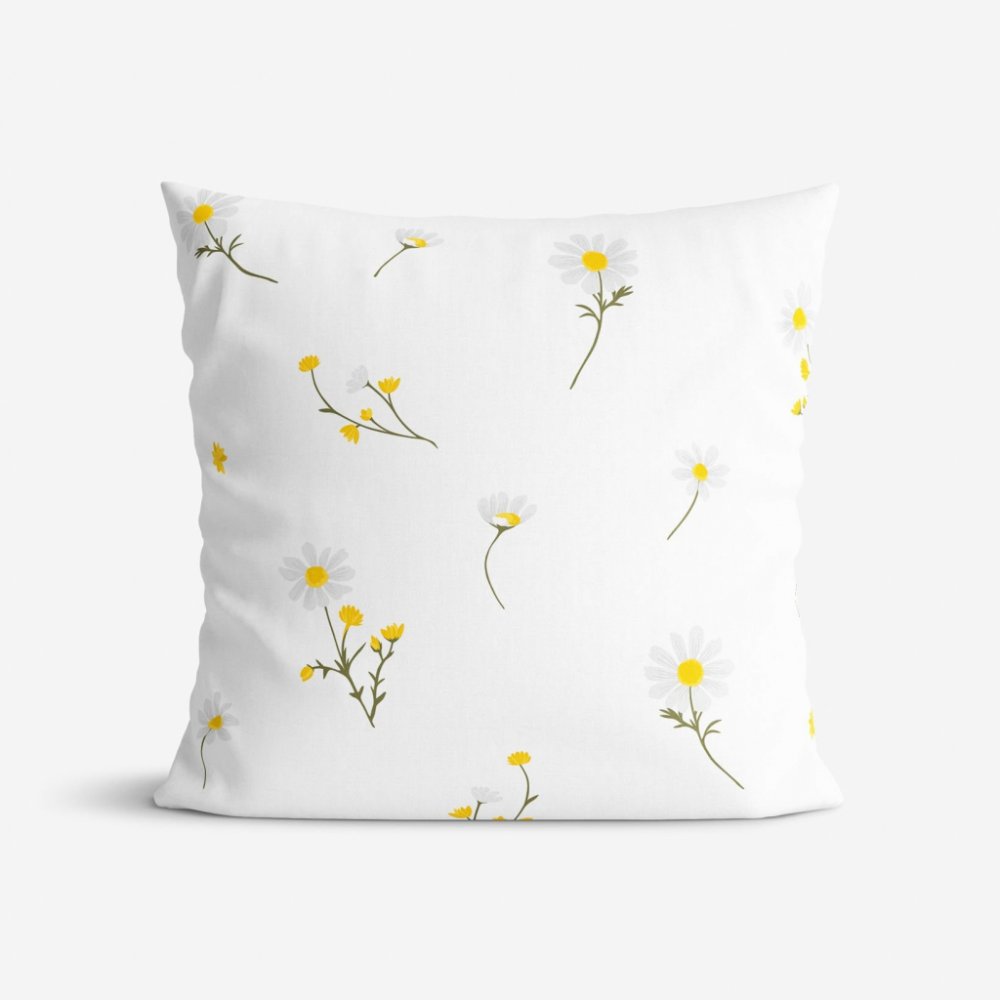 Bavlněný povlak na polštář s motivem heřmánku na bílém podkladu (z obou stran stejný motiv). Povlak je vyroben z kvalitní a příjemné 100% bavlny. Je opatřen praktickým zapínáním na zip.
