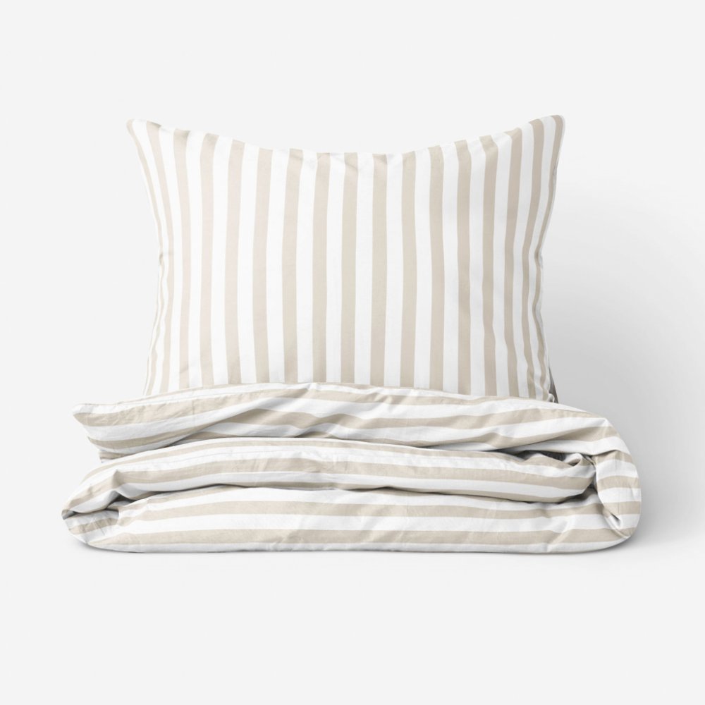 Povlečení s motivem latte proužků bude hezkým designovým doplňkem do Vaší ložnice. Je ušito ze 100% hladké bavlny o gramáži 145 g/m2. Podkladem povlečení je bílá barva.