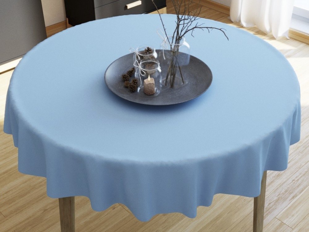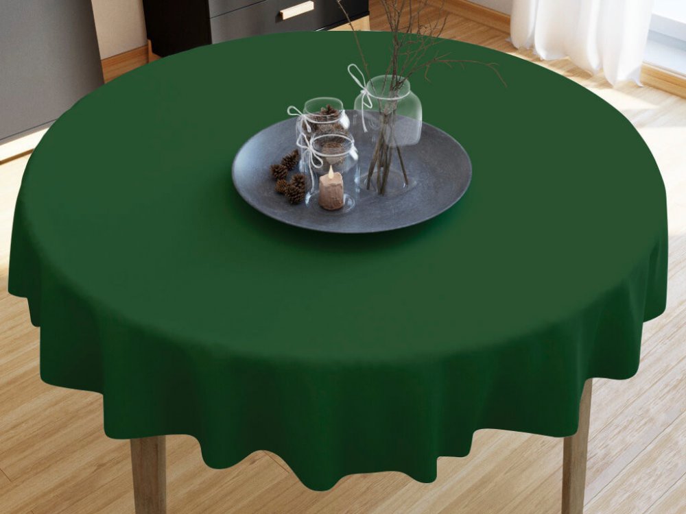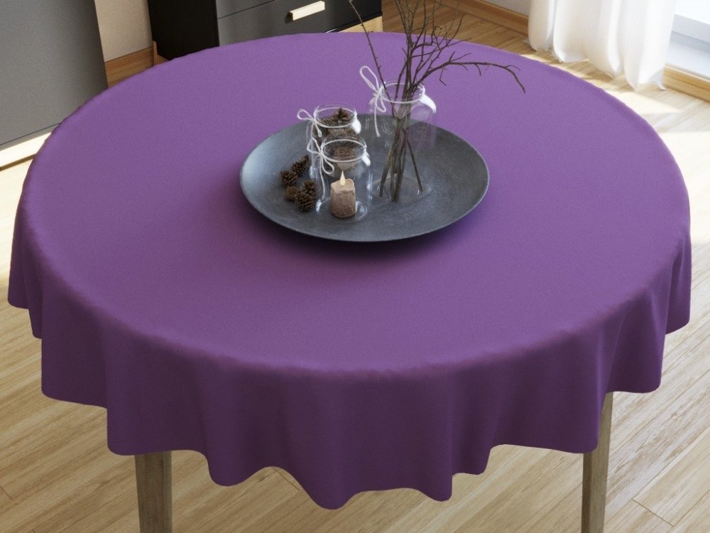 Tmavě šedý kulatý ubrus vyrobený ze 100% bavlněného plátna o gramáži 145g/m2. Ubrus je po celém obvodu olemovaný.