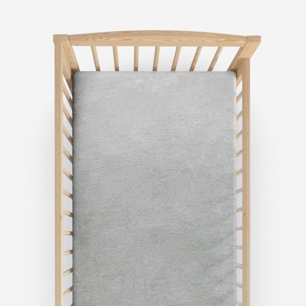 Nepropustné froté prostěradlo do dětské postýlky ve světle šedém provedení. Vrchní část prostěradla je z příjemné 100% bavlny v úpravě froté. Spodní část je opatřena polyuretanovým zátěrem (PU).