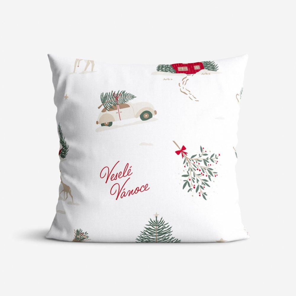Bavlněný povlak na polštář s motivem českých vánočních symbolů na bílém (z obou stran stejný motiv). Povlak je vyroben z kvalitní a příjemné 100% bavlny. Je opatřen praktickým zapínáním na zip.