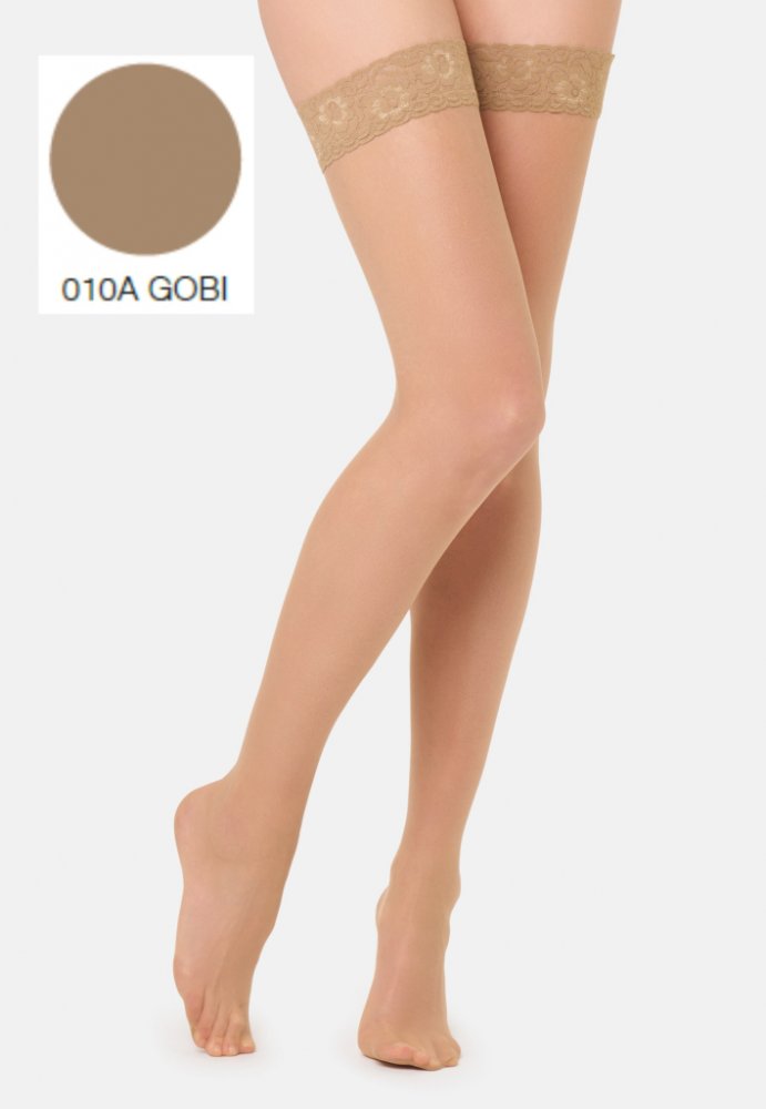 Golden Lady Extra jemné samodržící punčochy SUNFRESH 10 DEN gobi Tělová
