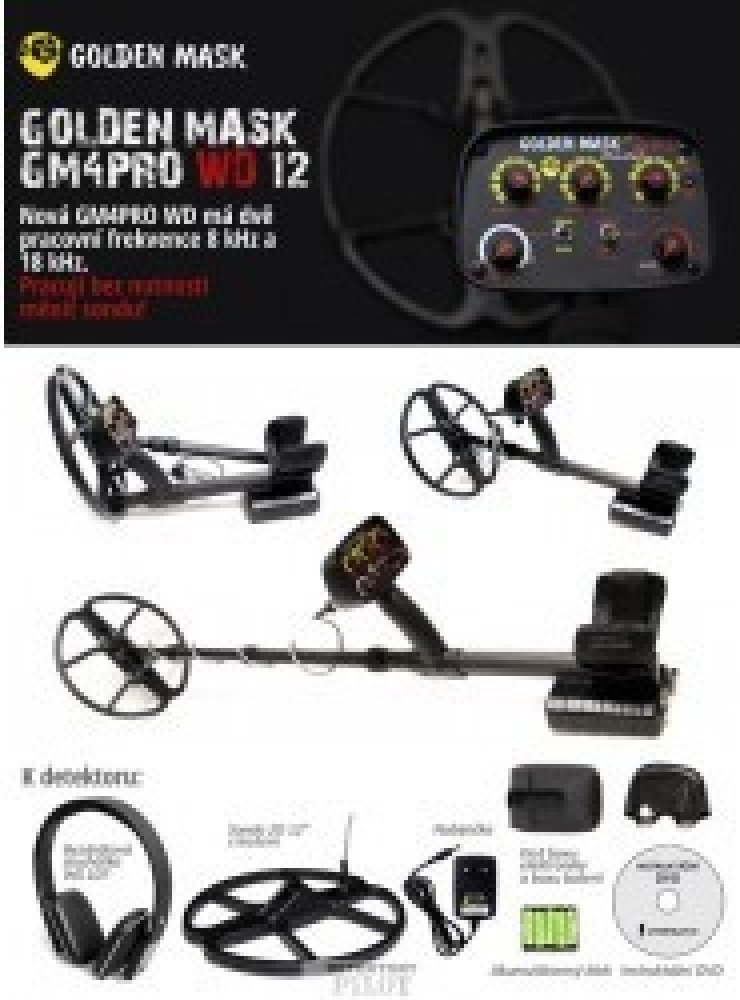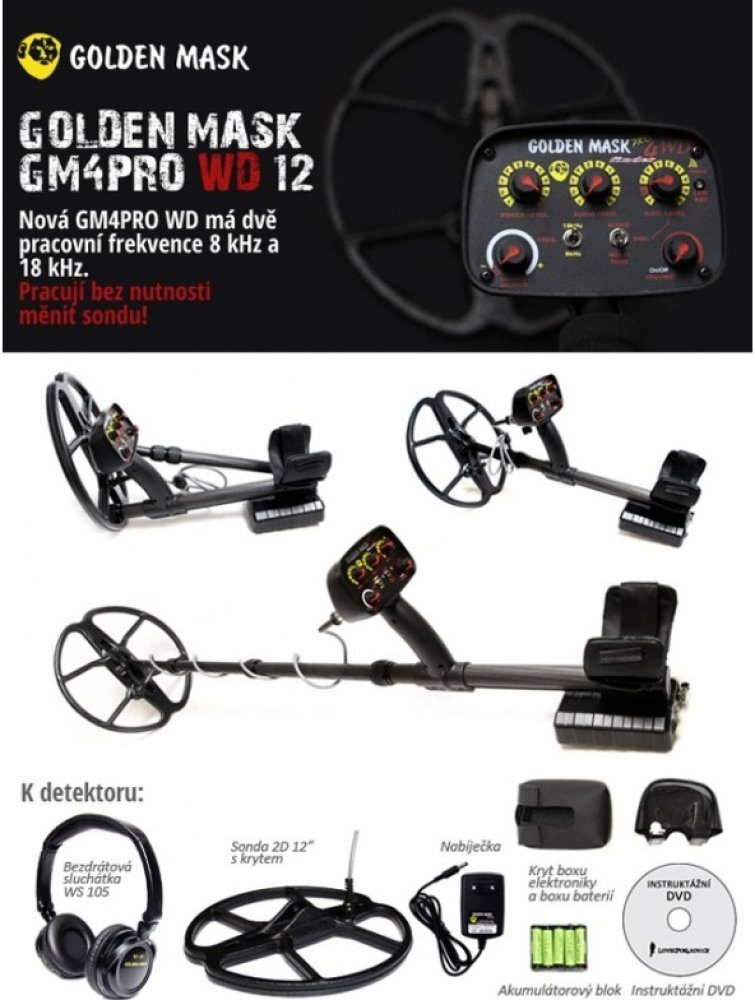 Nový dvoufrekvenční detektor detektor kovů Golden Mask GM4PRO WD osazený sondou 30 cm 2D spider (12") a nasazený na nové konstrukci
