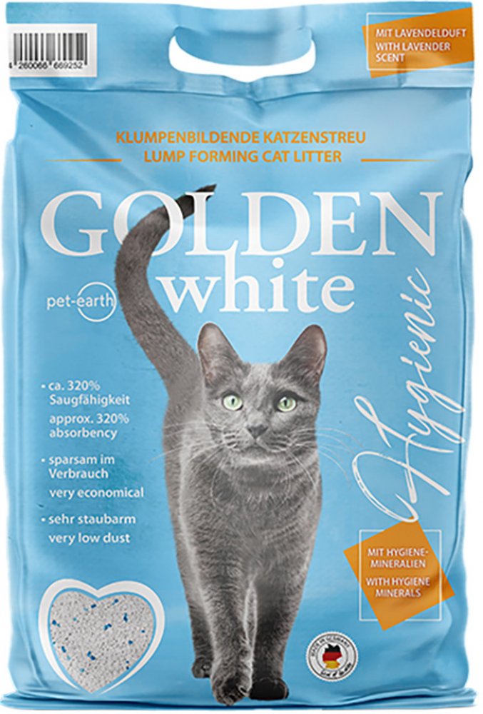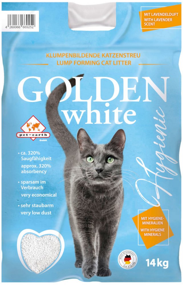 Kočkolit Golden Grey Master z jemného bentonitu je u chovatelů koček velmi oblíbený. Všechny výhody podestýlky Golden Grey Mater v přehledu: bentonit (zrna: vel.12) s vůní dětského pudru hrudkující stelivo 350% savost bezprašná Jíl, který je pro výrobu kočkolitu Golden Grey Master používán, je čistě přírodní produkt a proto také zcela bezpečný pro Vaši kočku. Díky velké schopnosti absorbce (cca 350% savost) odstraní Extreme Classic nepříjemné zápachy a přitom provoní své okolí lehkou vůní dětského pudru. Podestýlka je vyrobena z neprašeného granulátu, který neulpívá na tlapkách Vaší kočky. A protože s Golden Grey Master je potřeba odstraňovat pouze hrudky s močí a nikoli celou podestýlku kočičí toalety, je toto hrudkující stelivo úspornější a snadnější v použití než běžné stelivo. 14 kg Golden Grey odpovídá zhruba 42,2 kg běžného kočkolitu! Kočkoli Golden White je čistě přírodní produkt a je vyroben z bílého jílu. Všechny výhody kočkolitu v přehledu: jíl s modrými hygienickými zrnky pro větší vazbu zápachu příjemná vůně levandule jemné hrudkující stelivo 320% savost úsporné ve spotřebě, až 8 týdnů použití bez nutnosti kompletní výměny Jíl, který je použitý k výrobě kočkolitu Golden White Master je čistě přírodní produkt a tím je pro kočky absolutně neškodný. Jemná zrna jsou pro kočičí tlapky příjemná. Díky velké schopnosti absorpce cca 320% a přídavku modrých hygienických zrníček se neuvolňují nepříjemné zápachy. Jakmile přijde kočkolit do styku s kapalinou, uvolní se navíc decentní vůně levandule. Golden White je mimořádně úsporné stelivo a je možno ho používat až 8 týdnů, aniž by bylo nutno vyměňovat celý obsah toalety. Při každodenním čištění se odstraní hrudky, které se zlikvidují formou domácího odpadu. 14 kg kočkolitu Golden White odpovídá cca 42 kg běžných steliv. Po počátečním importu hotových balení kočkolitu Golden Grey z Kanady, byla v roce 2005 kompletní výroba přemístěna do vlastního závodu v Německu. Využijte naší skvělé nabídky! Pouze po omezenou dobu: nyní při koupi 14 kg kočkolitu Golden Grey nebo White získáte další 2 kg zdarma! 14 kg za cenu 12! Neopomeňte prosím, že se uvedená nabídka vztahuje pouze na produkt č. 1891135.