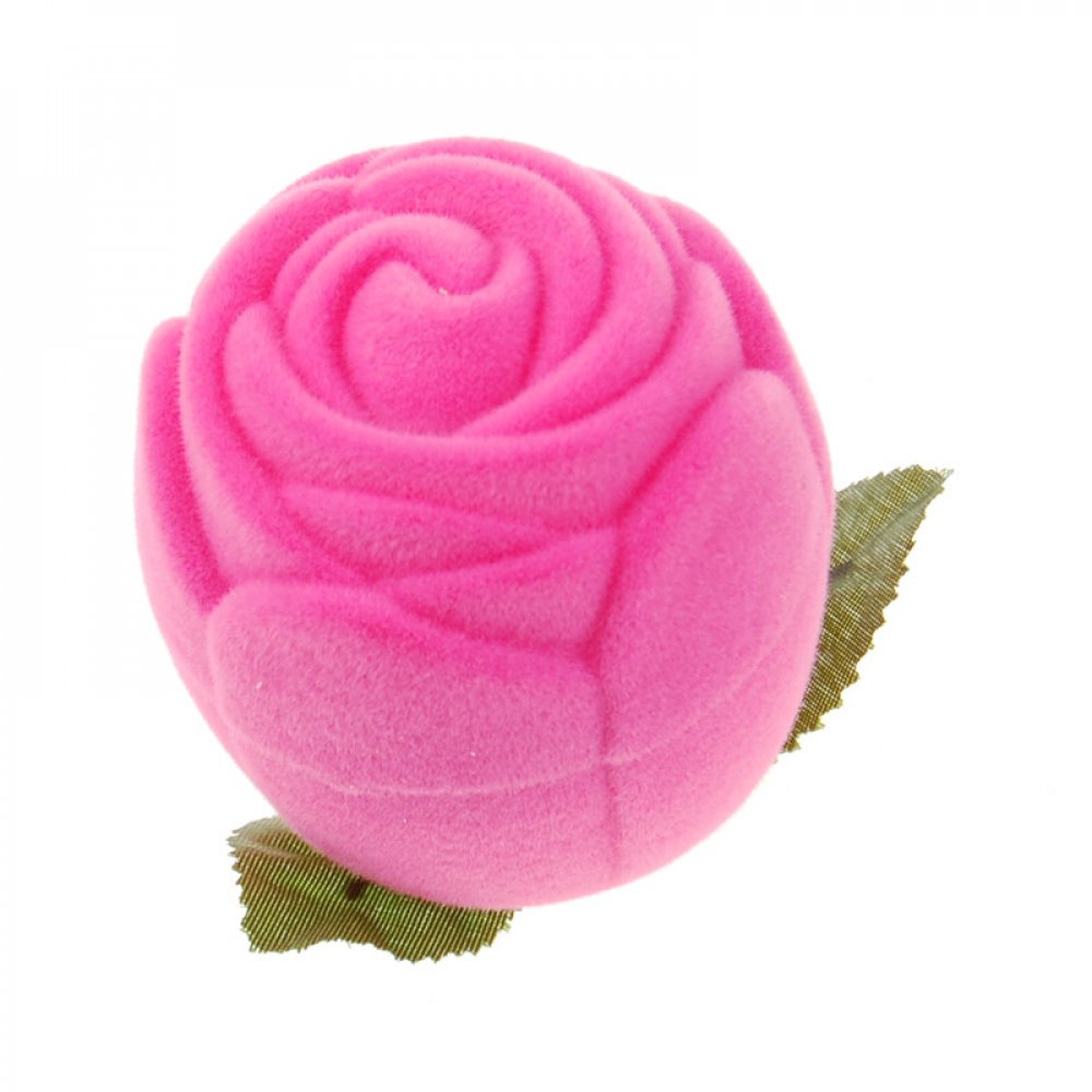 Velice pěkná sametová krabička na šperky ve tvaru růže růžové barvy.
