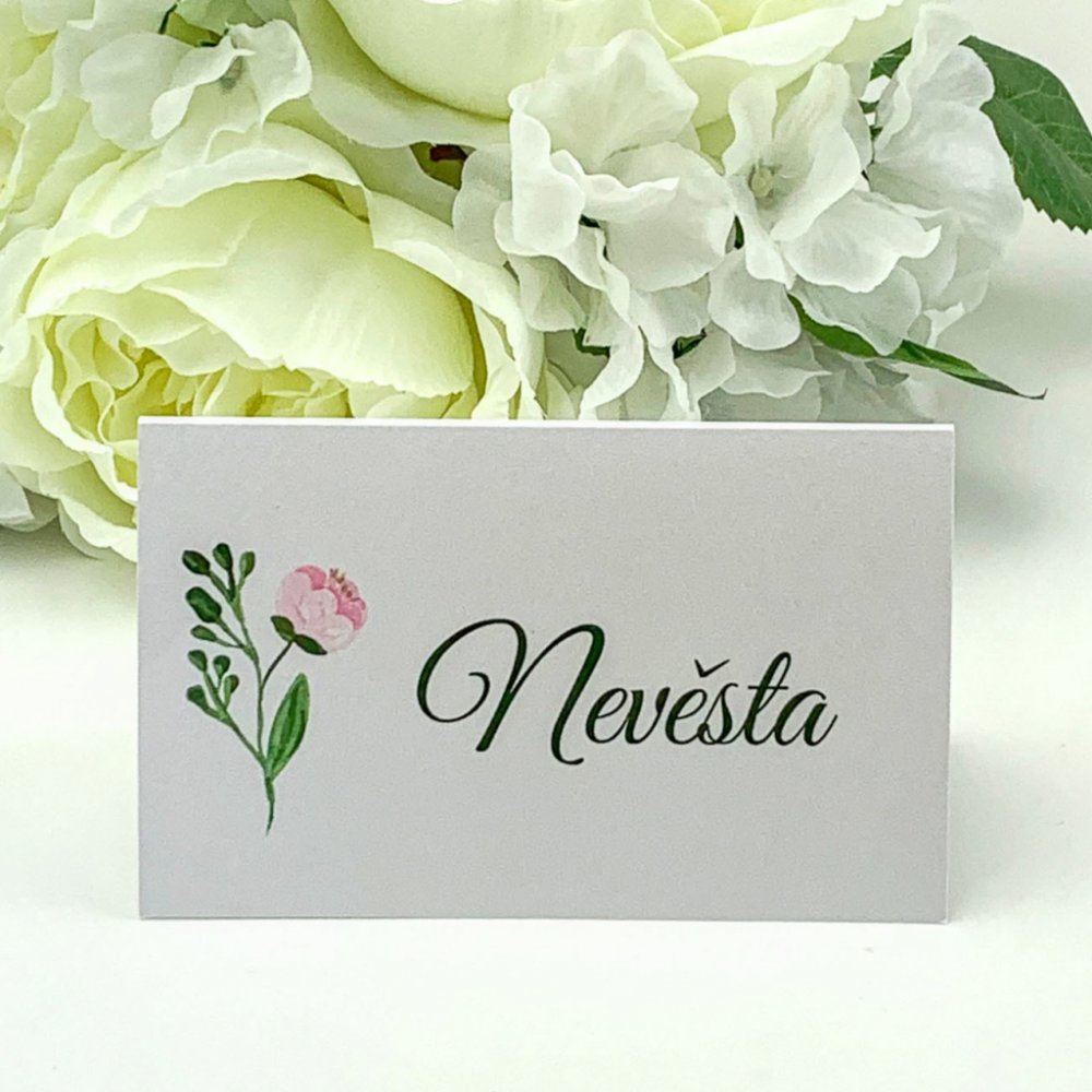 Máte rádi dokonalost v detailech? Zvolte kvalitní svatební jmenovky z tvrdého kartonu , které budou krásně ladit se stejnou produktovou sadou svatebních krabiček ze svatebního stylu Fresh Flowers. Motiv květiny je vytvořen digitálním tiskem. Pro dodržení stejného vzhledu textu doporučujeme zvolit digitální dotisk (6 Kč á 1 jmenovka) nebo si můžete jmenovky sami nadepsat.