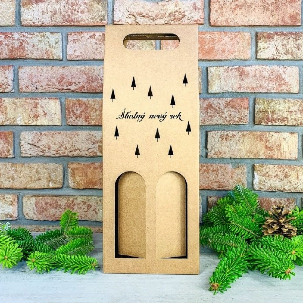 Dárková krabice na dvě lahve vína s nápisem Šťastný Nový rok je vhodným dárkem svým blízkým, přátelům nebo poděkováním obchodním partnerům, zákazníkům.