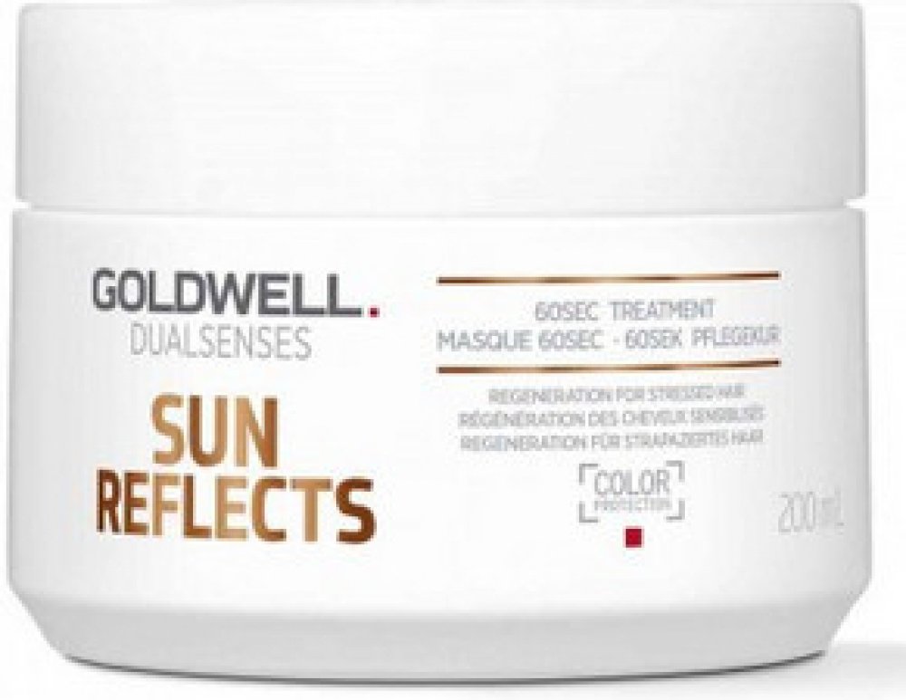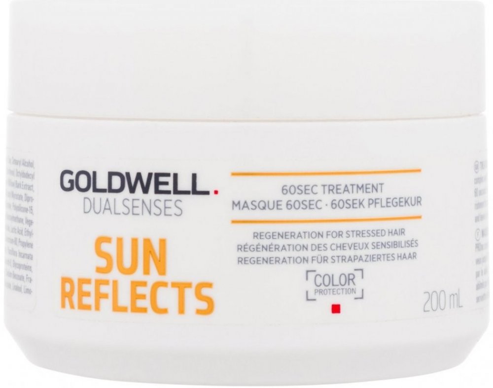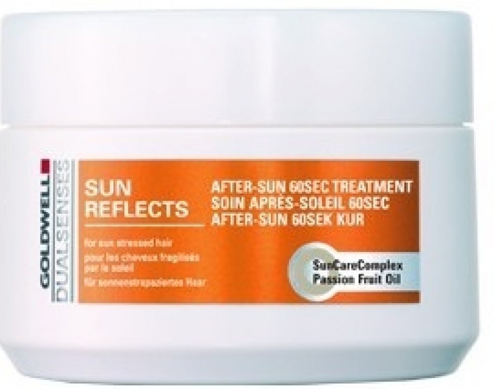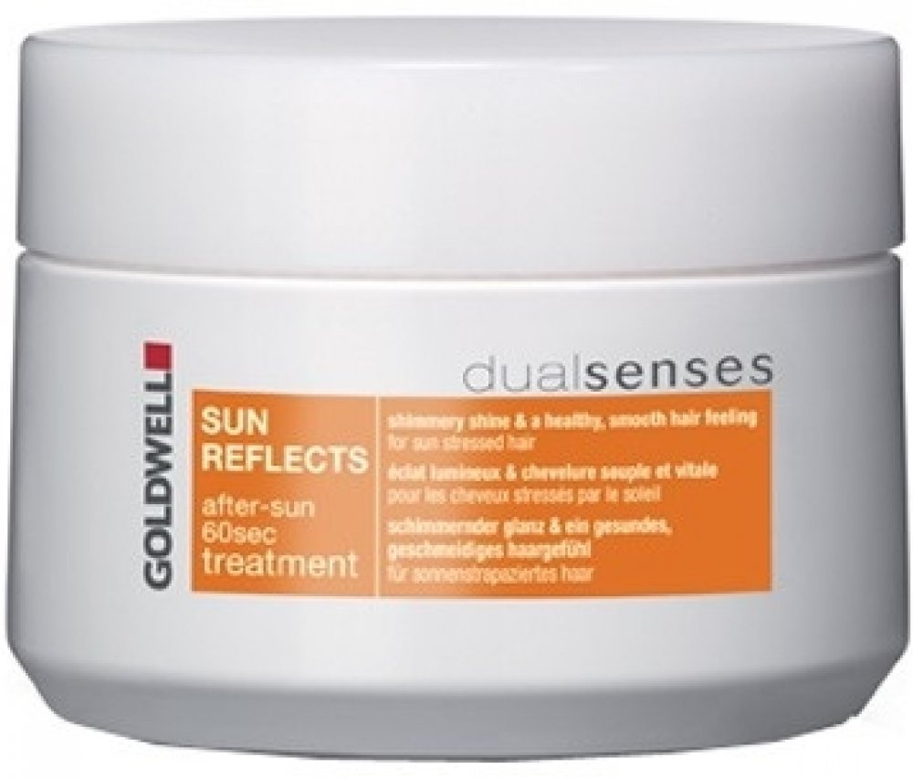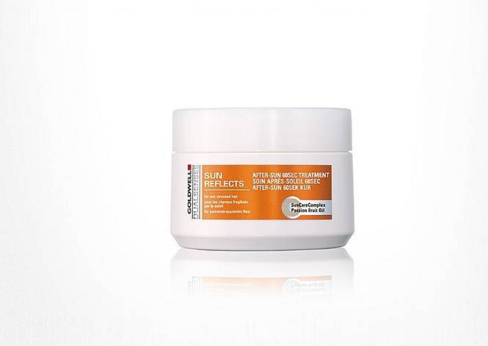 Goldwell DS Sun Reflects After Sun 60SEC maska pro vlasy namáhané sluncem. Po použití masky jsou vlasy regenerovány až o 100% během 60 sekund od účinků slunce, chlorované nebo slané vody. Aktivně zabraňují lámavosti vlasů. Navrací vlasům zdraví a lesk. Obsahuje SunCareComplex s olejem z marakuji, UVA a UVB filtry a Instat Microfluid Technology.