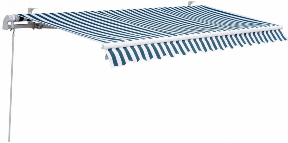 Vysoce kvalitní okenní markýza vhodná pro balkon i terasu. Je vyrobena z odolného polyesteru s vodoodpudivým polyuretanovým povlakem a je opatřena dvěma kovovými držáky a ruční klikou pro snadné ovládání.