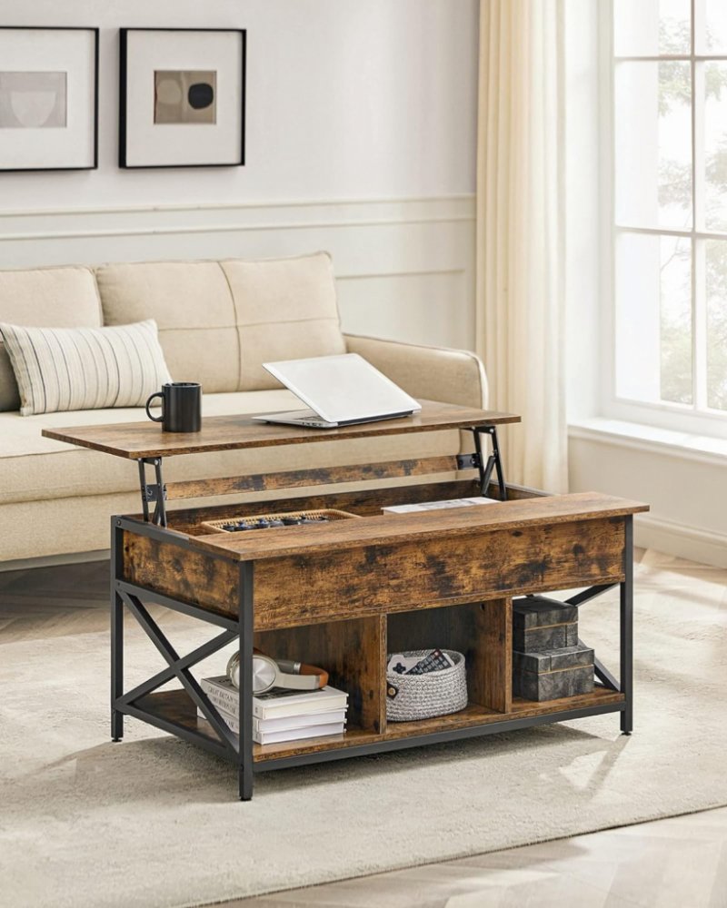 Tento konferenční stolek s robustním železným rámem a policí v rustikálním stylu vypadá velmi stylově. Tři prostorné zásuvky nabízejí ještě více úložného prostoru. Tento konferenční stůl díky kterému můžete pracovat, v klidu se najíst nebo hrát rodinné aktivity se stane ústředním prvkem Vašeho obývacího pokoje.