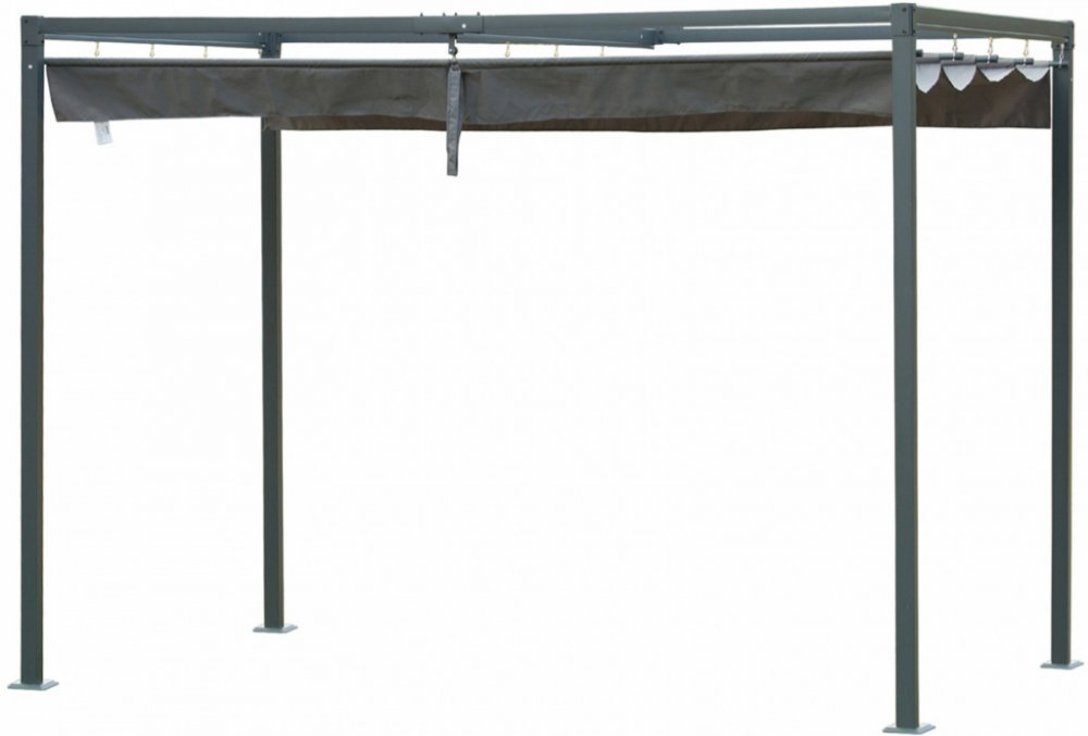 Užívejte si spolu s vaší rodinou různé společenské události a buďte chráněni před rozmary počasí pod touto pergolou se zatahovací střechou. Díky své otevřené struktuře lze naši pergolu použít jako zahradní pavilon, terasu nebo střechu a poskytuje dostatečnou ochranu před přímým slunečním světlem a slabým deštěm. Tato pergola je vyrobena z kovového rámu s práškovým nástřikem a polyesterové střechy.