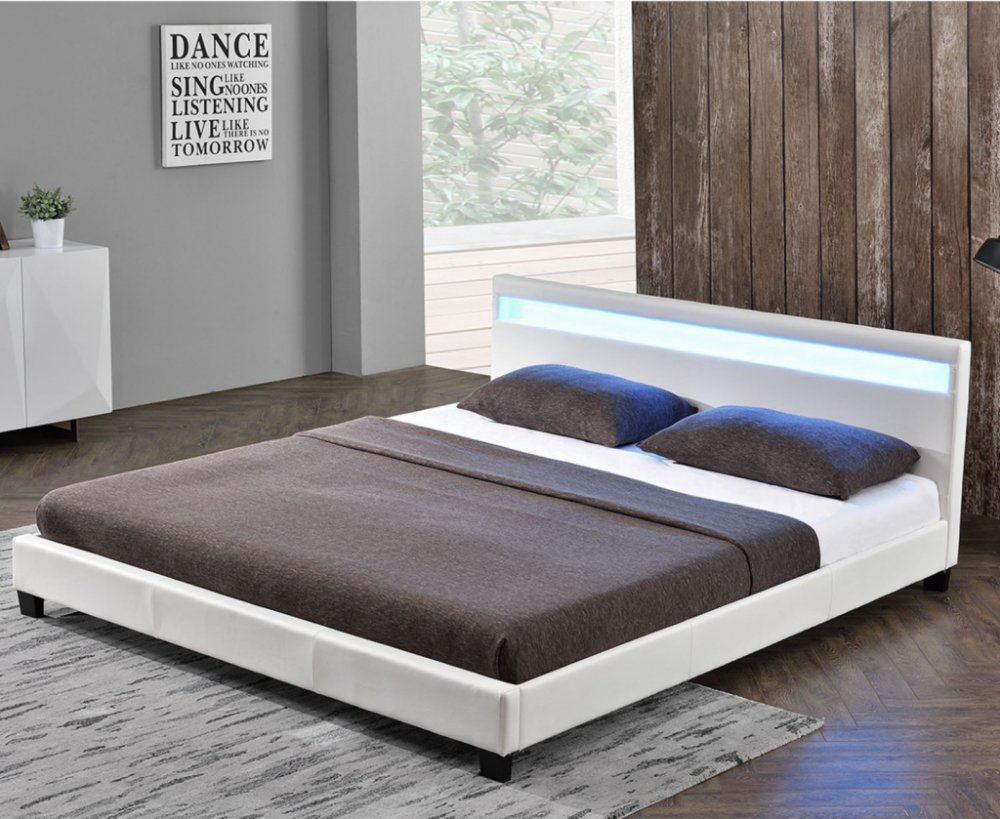 Moderní čalouněná postel s koženkovým čalouněním s jednoduchou péčí Vám připraví sladké sny a klidný spánek. LED osvětlení instalované podél čelního panelu poskytuje příjemné světlo a rozšiřuje do ložnice velmi zvláštní kouzlo. Světlo můžete ovládat dálkově a nastavit jas i barvu podle nálady.