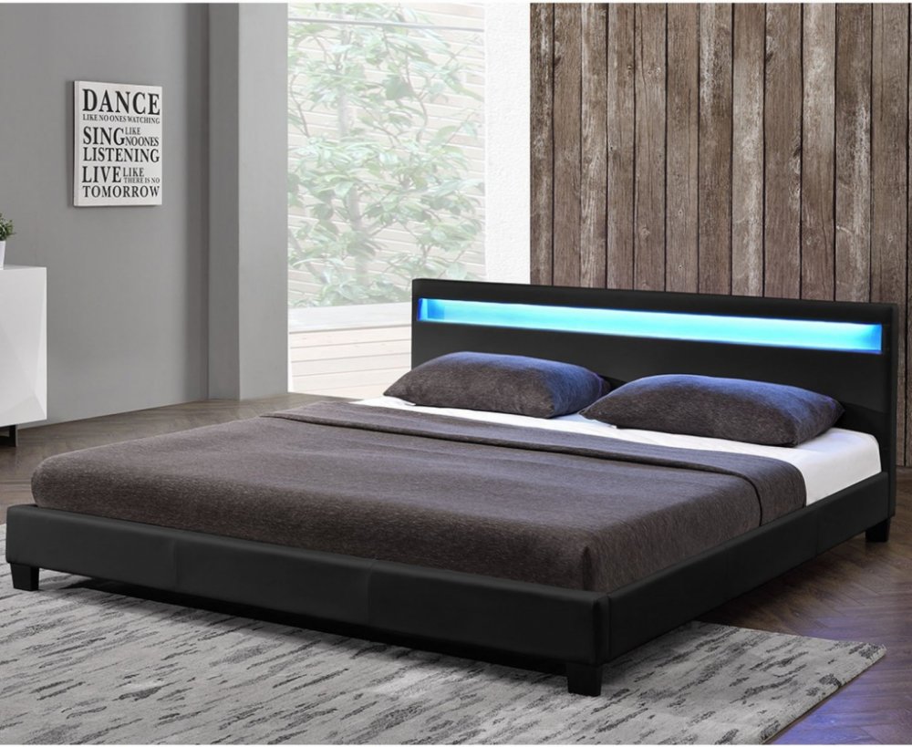 Moderní čalouněná postel s koženkovým čalouněním s jednoduchou péčí Vám připraví sladké sny a klidný spánek. LED osvětlení instalované podél čelního panelu poskytuje příjemné světlo a rozšiřuje do ložnice velmi zvláštní kouzlo. Světlo můžete ovládat dálkově a nastavit jas i barvu podle nálady.