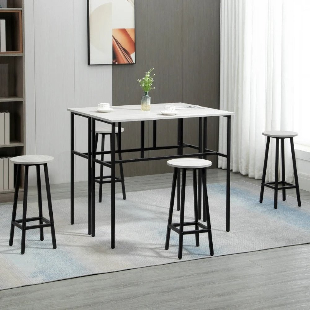 6dílná sedací sestava se skládá ze dvou obdélníkových stolů a čtyř barových židlí
