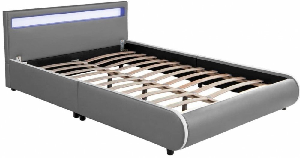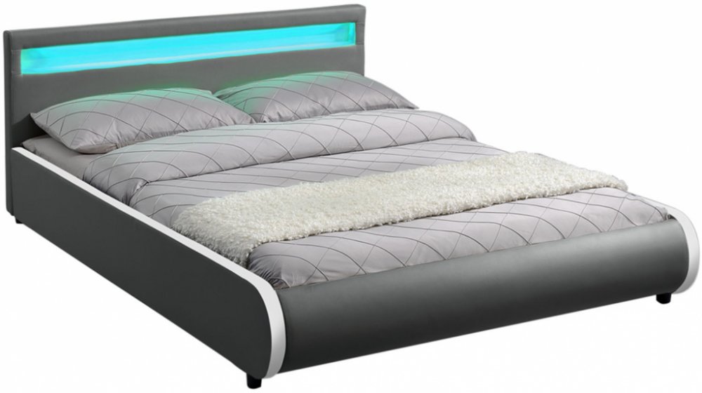 Moderní čalouněná postel s koženkovým čalouněním s jednoduchou péčí Vám připraví sladké sny a klidný spánek. LED osvětlení instalované podél čelního panelu poskytuje příjemné světlo a rozšiřuje do ložnice velmi zvláštní kouzlo. Světlo můžete ovládat dálkově a nastavit jas i barvu podle nálady.