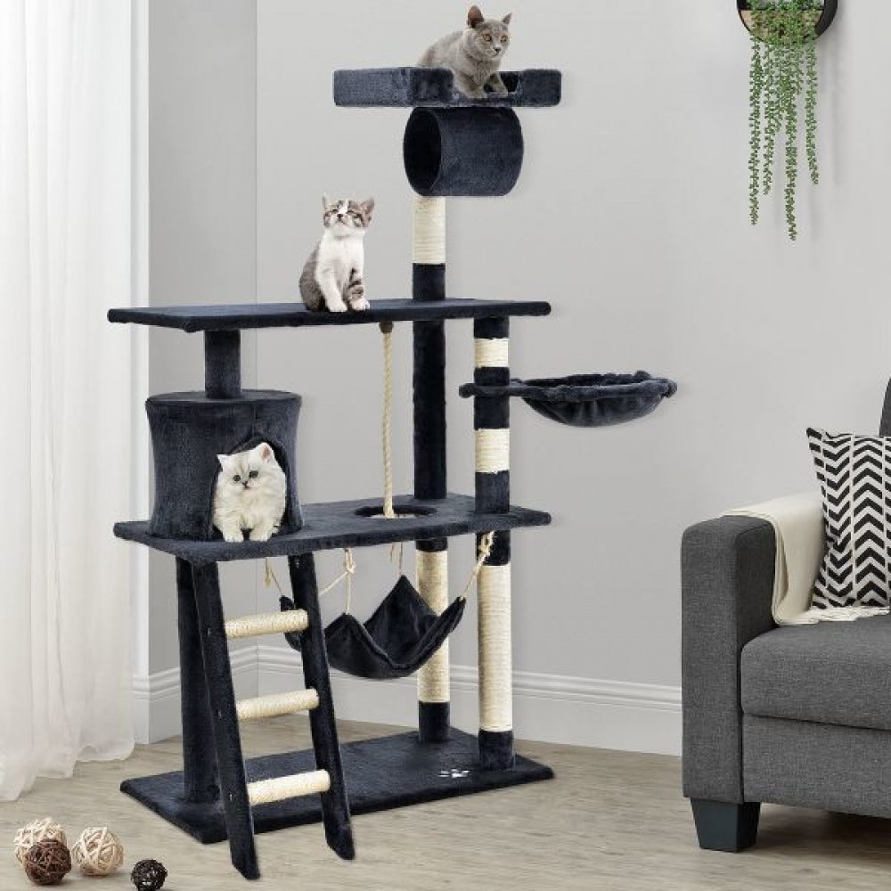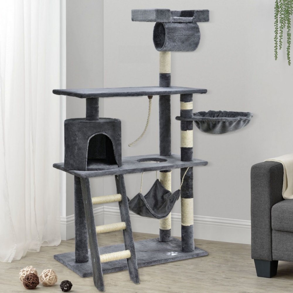 Kromě svého krásného vzhledu je strom perfektní i na lezení, schovávání, sledování, spánek nebo škrábání - kočičí strom je skvělý a všestranný - vaše kočka si ho zamiluje. 3 desky, 1 žebřík, 1 lano a 1 tunel. Vyhlídkové plošiny jsou vynikající místa na pozorování.