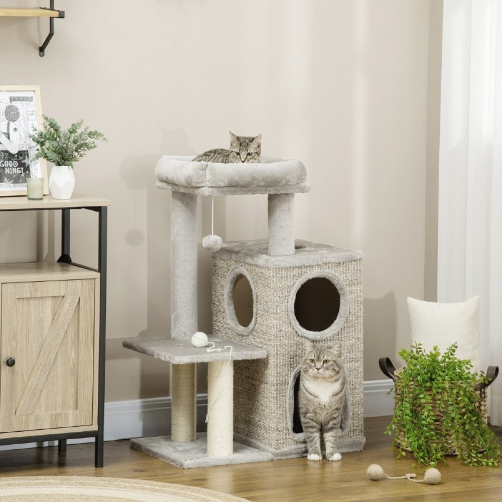 Goleto 60 x 40 x 91 cm 91.0 cm šedá škrabadla dřevotřísková / plyšová / sisalová stromy pro malé kočky 2 s velkým půdorysem