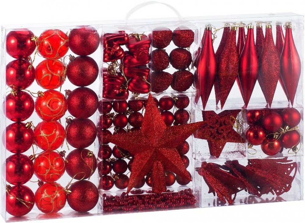 Vánoční ozdoby sada 102 kusů | červené