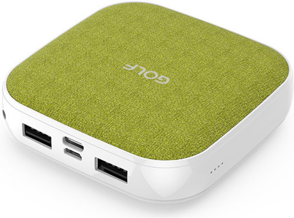 Golf G82 je powerbanka s textilním potahem, kapacitou 10 000 mAh a dvěma USB-A výstupy. První USB výstup nabízí maximální výkon 5 W a druhý 10 W. Pro nabíjení powerbanky jsou k dispozici vstupy micro USB a USB-C. O stavu nabití baterie vás budou informovat čtyři LED diody na boku.