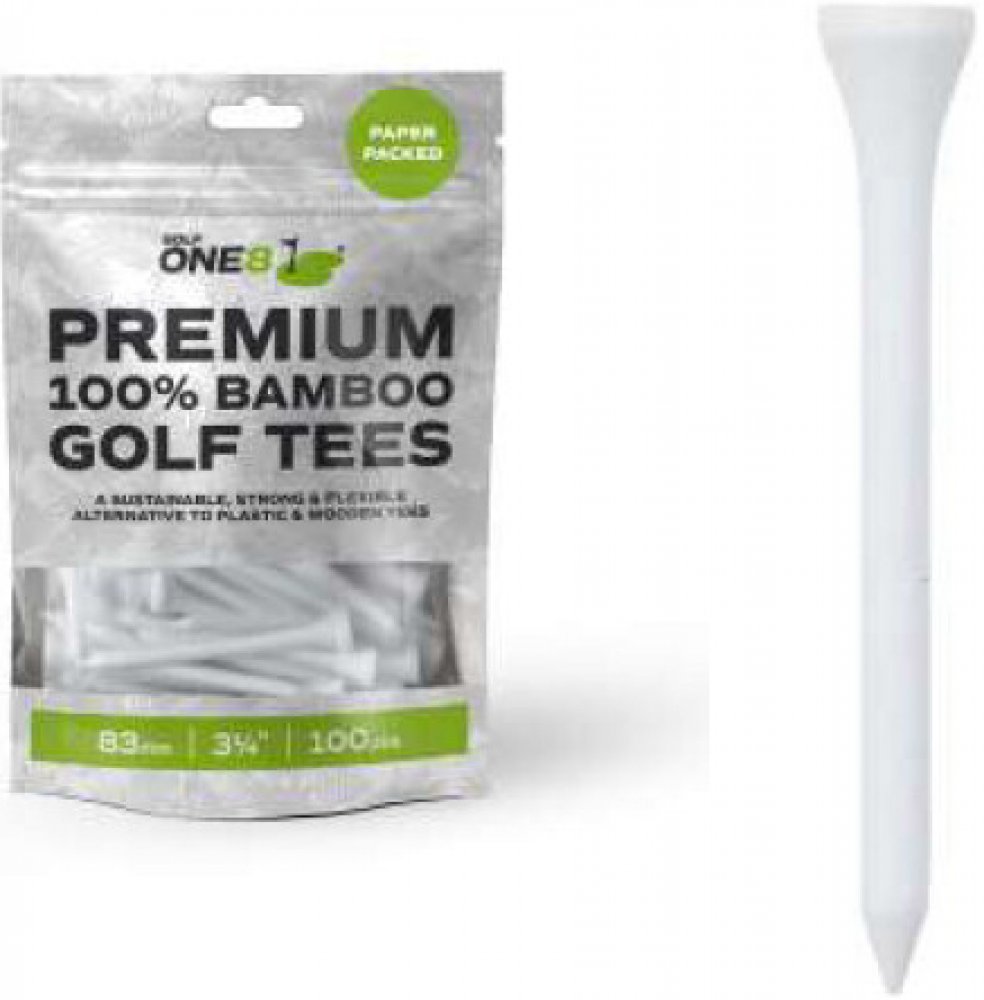 GOLF ONE8 Premium 100% Bamboo Golf Tees 83mm (3a1/4") - bílá 100ks